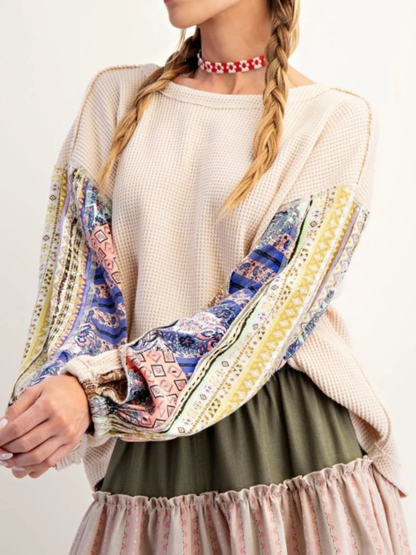 Waffle Knit Round Neck Dropped Shoulder Sweatshirt