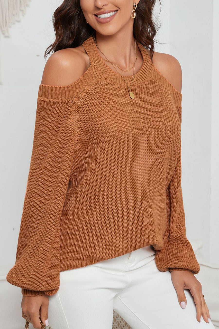 Cutout Back Cold Shoulder Long Sleeve Sweater