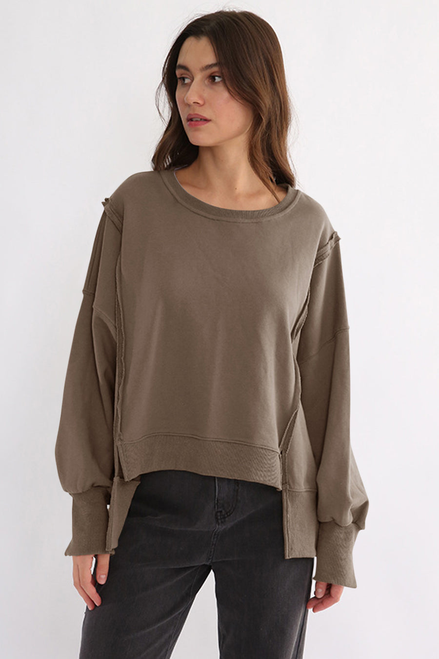 Exposed Seam High-Low Long Sleeve Sweatshirt