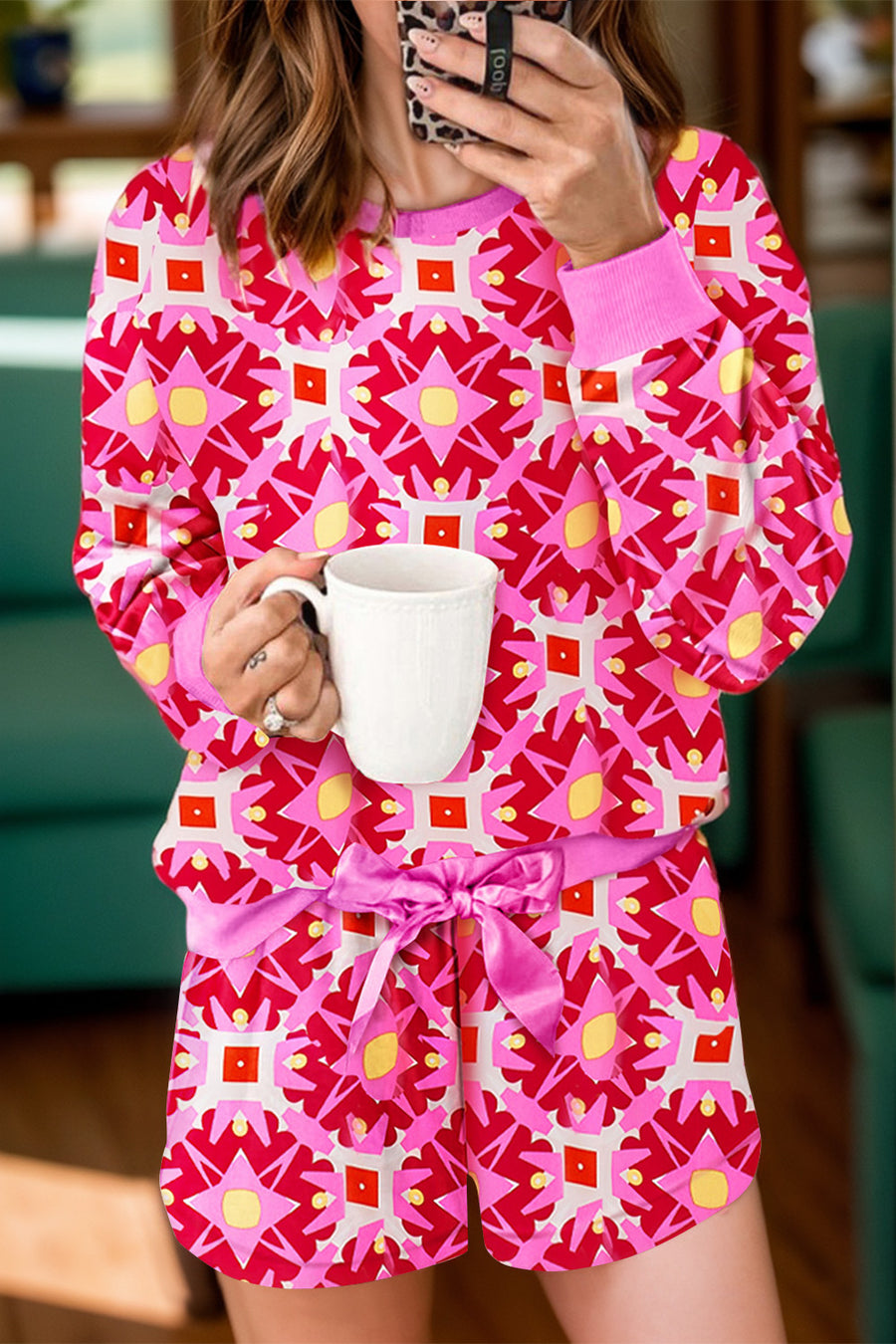 Geometric Round Neck Top and Shorts Set