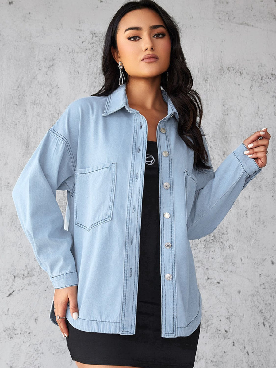 VERY J Mixed Media Button Down Raw Hem Shacket