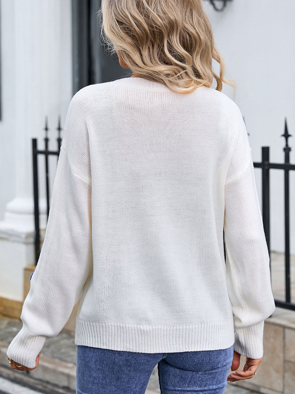 Flower Round Neck Dropped Shoulder Sweater