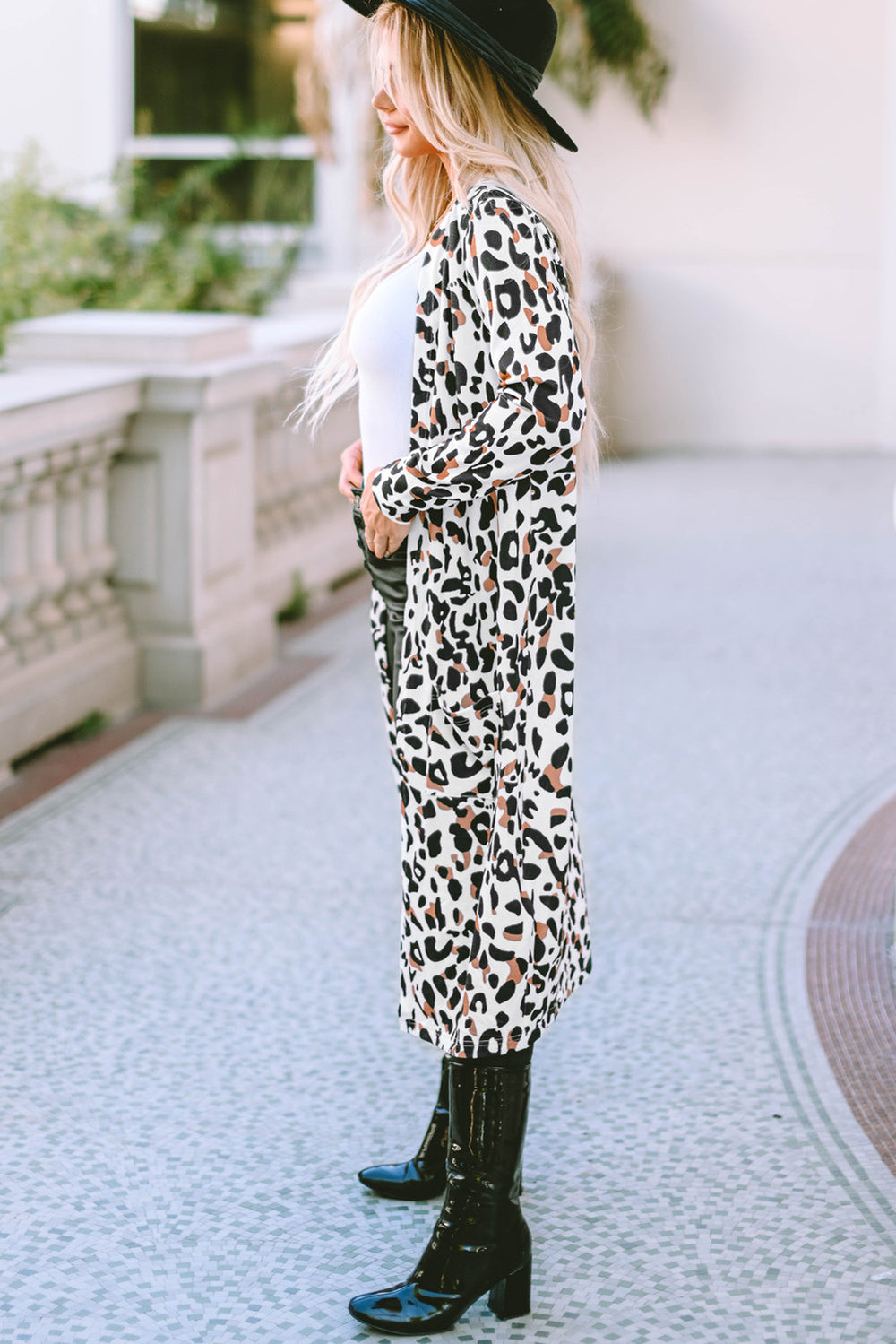 Leopard Open Front Long Sleeve Cover Up