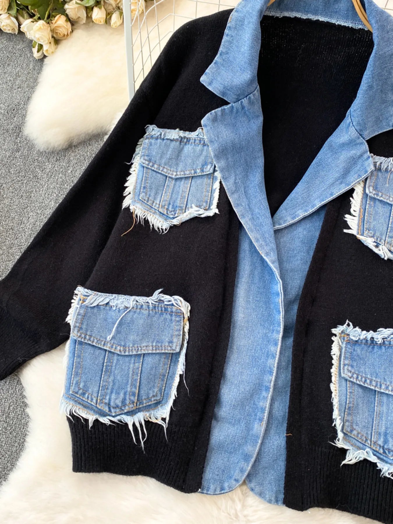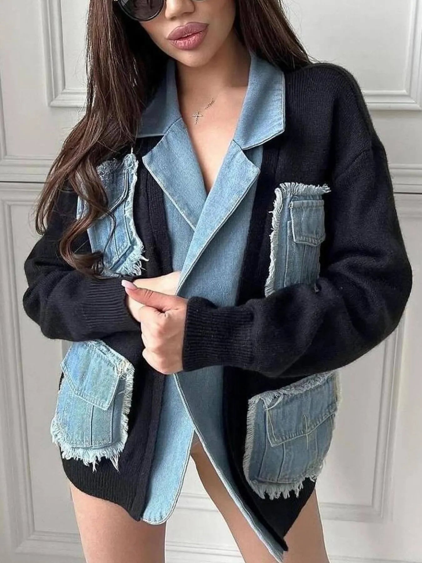 • Features:Contrast Stitching,Pocketed,Raw Hem