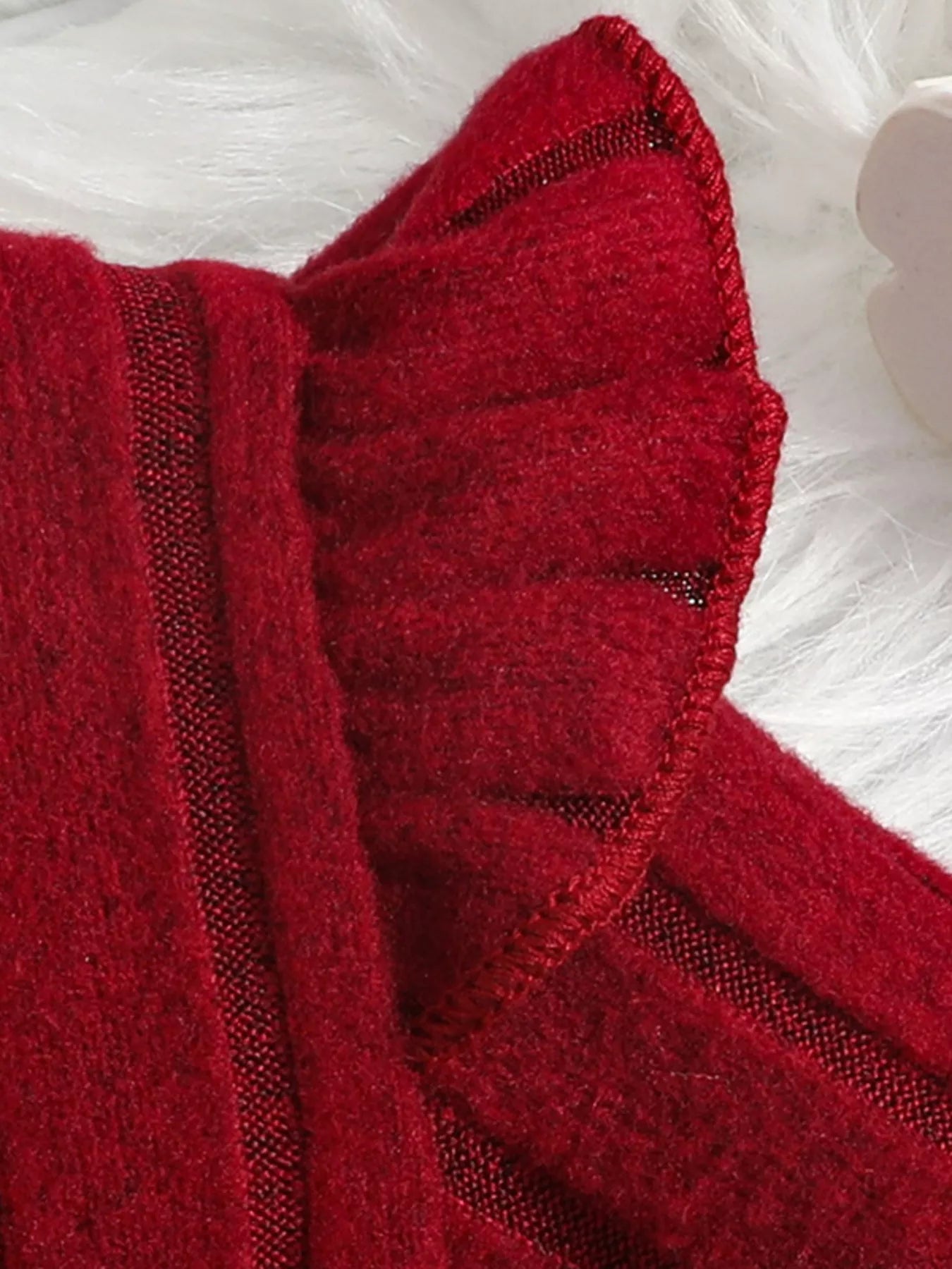 Children's Ribbed Knit Ruffle Trim Dress with Bag
