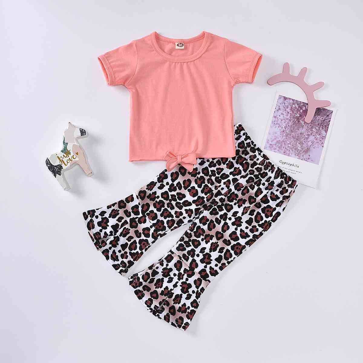 Girls Bow Detail Top and Leopard Flare Pants Set