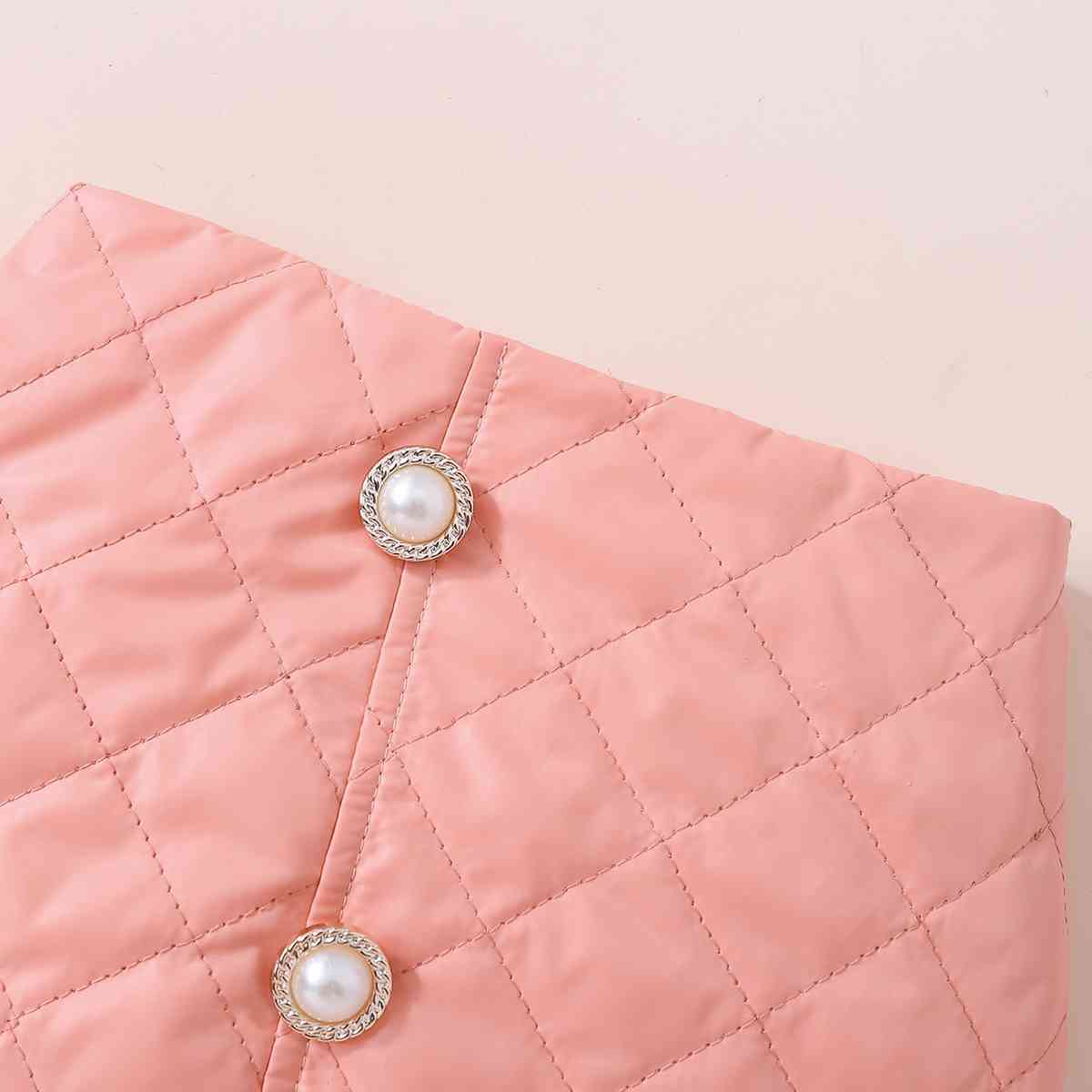 Girls Knit Top and Decorative Button Skirt Set with Bag