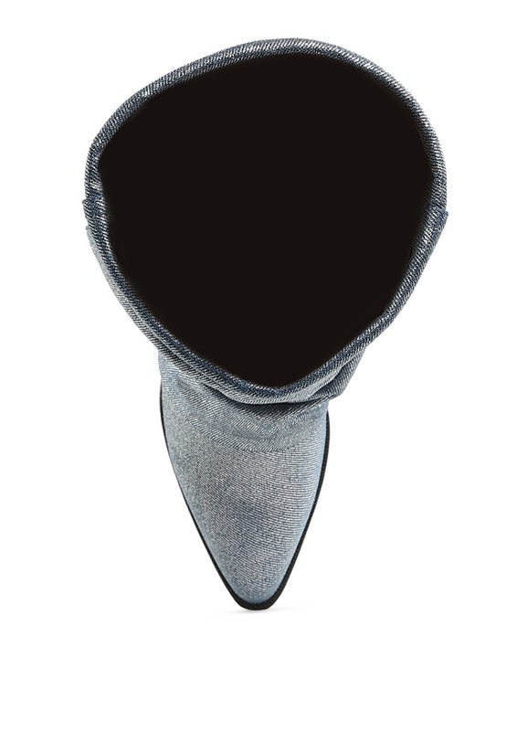These ultra-chic denim ankle boots blend classic style with a modern take, featuring a comfortable block heel. Finished with a stylish slouchy silhouette, these pointed-toe beauties are the perfect match for mini dresses or partywear in your wardrobe!