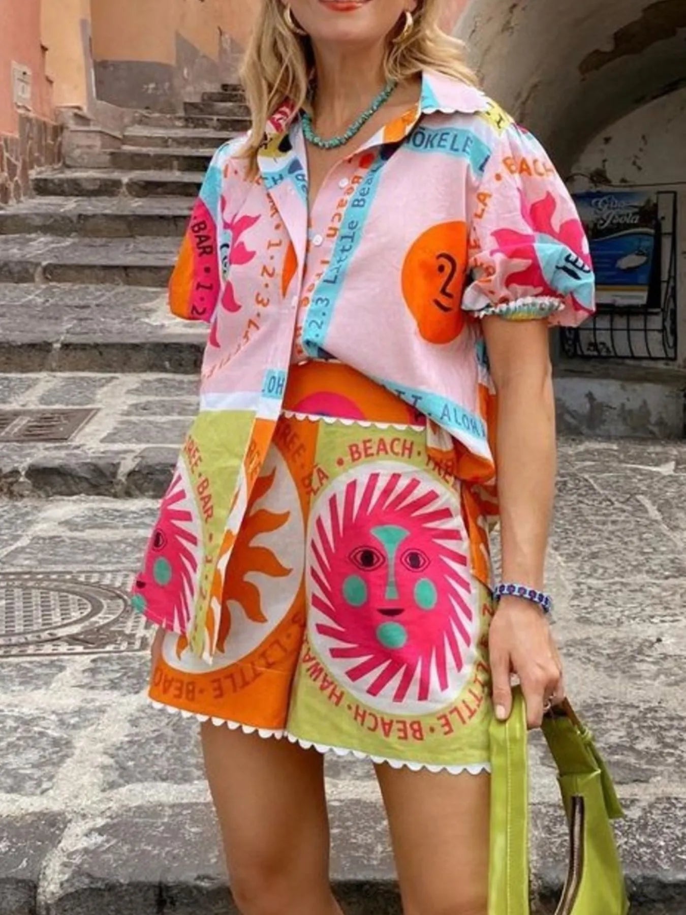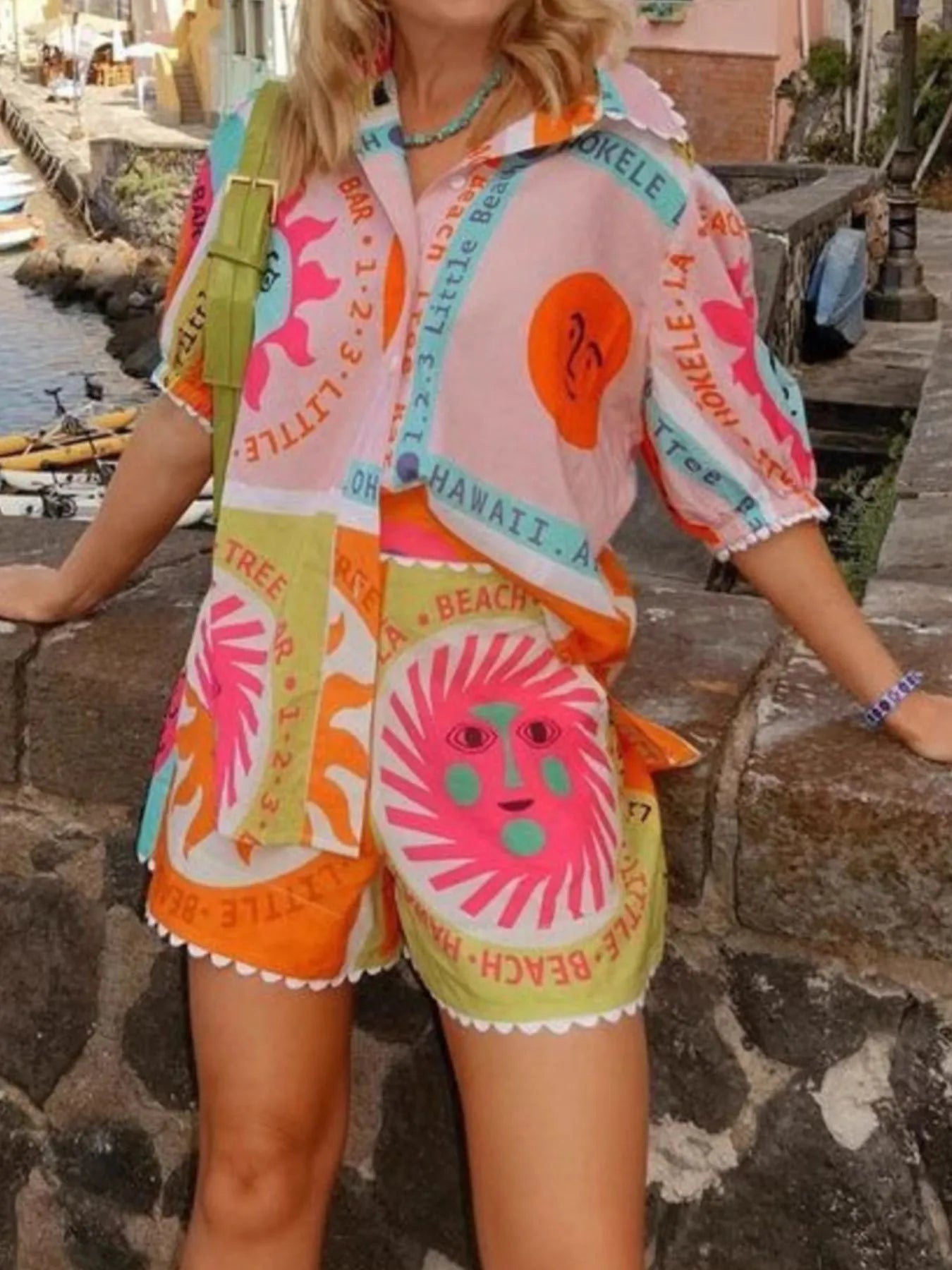 Striped Collar Patchwork Satin Bow Sweatshirt and Shorts Set