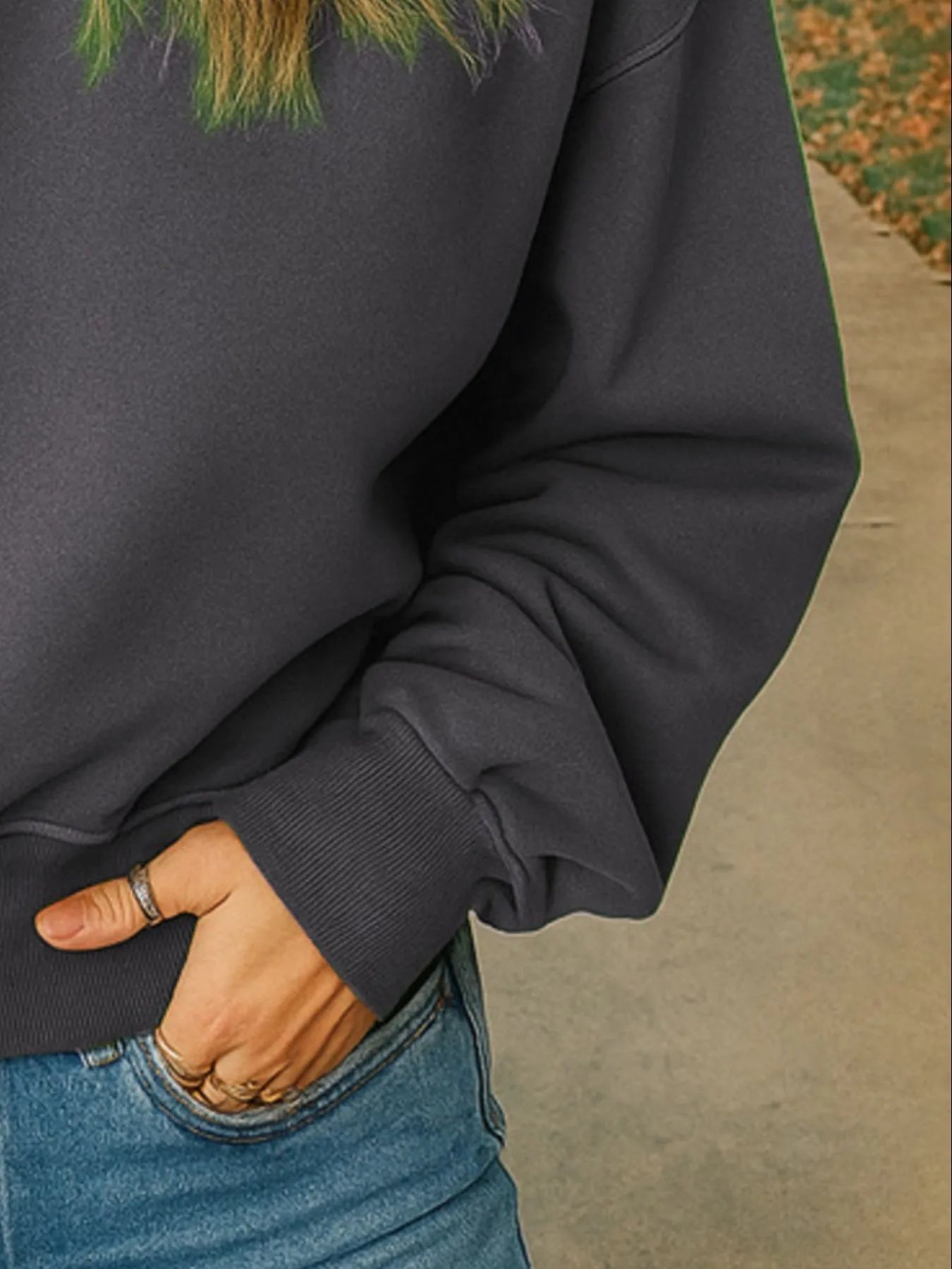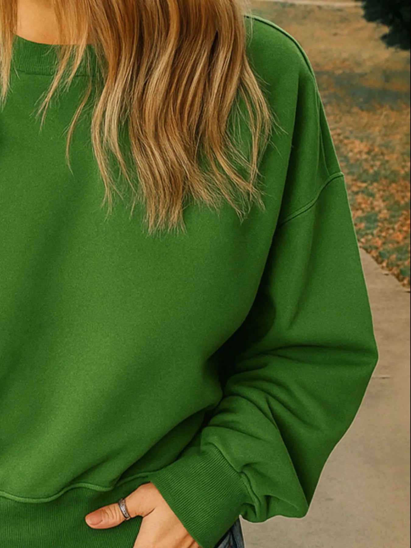 Full Size Basic style Round Neck Cropped Sweatshirt Plus Size