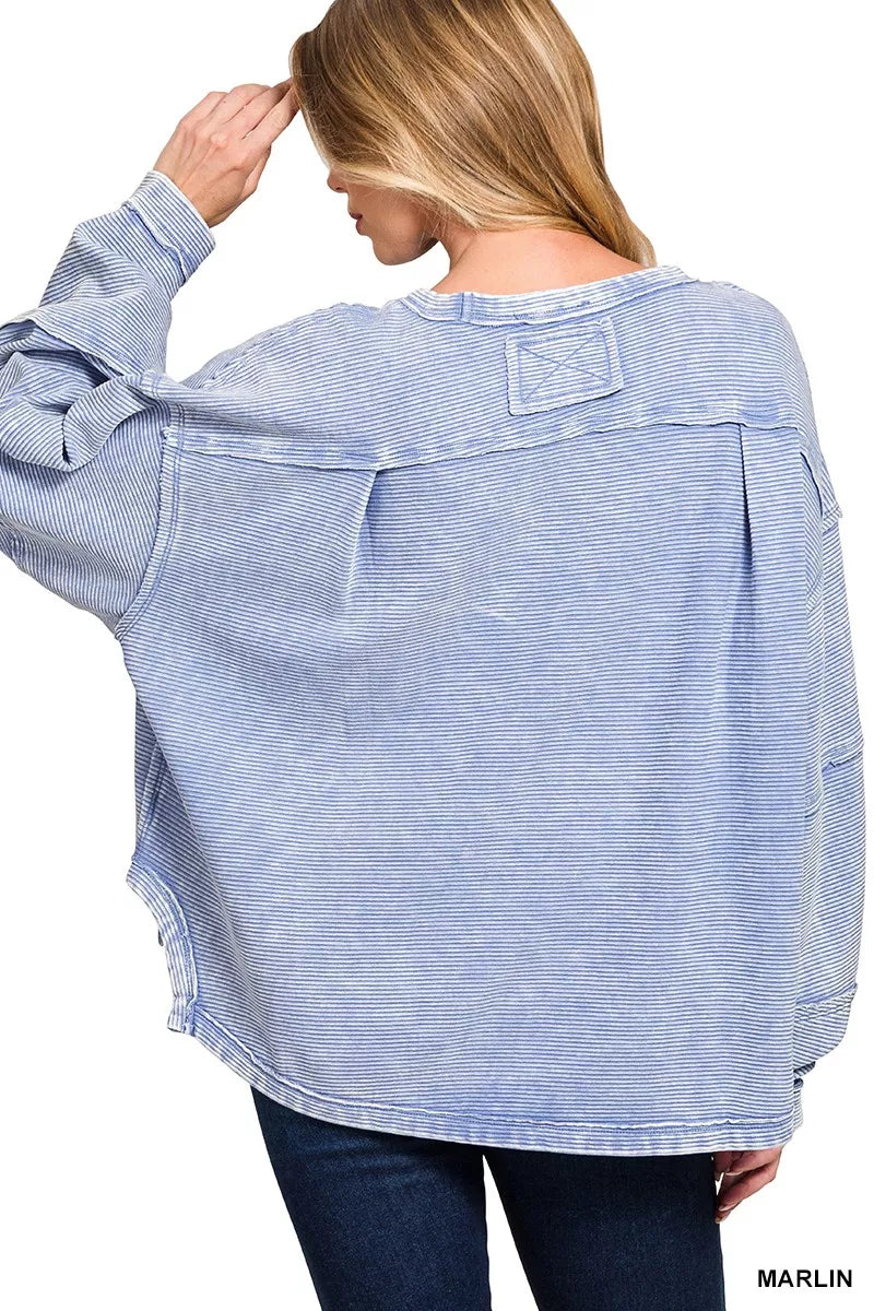 Zenana Acid Washed Exposed-Seam Sweatshirt