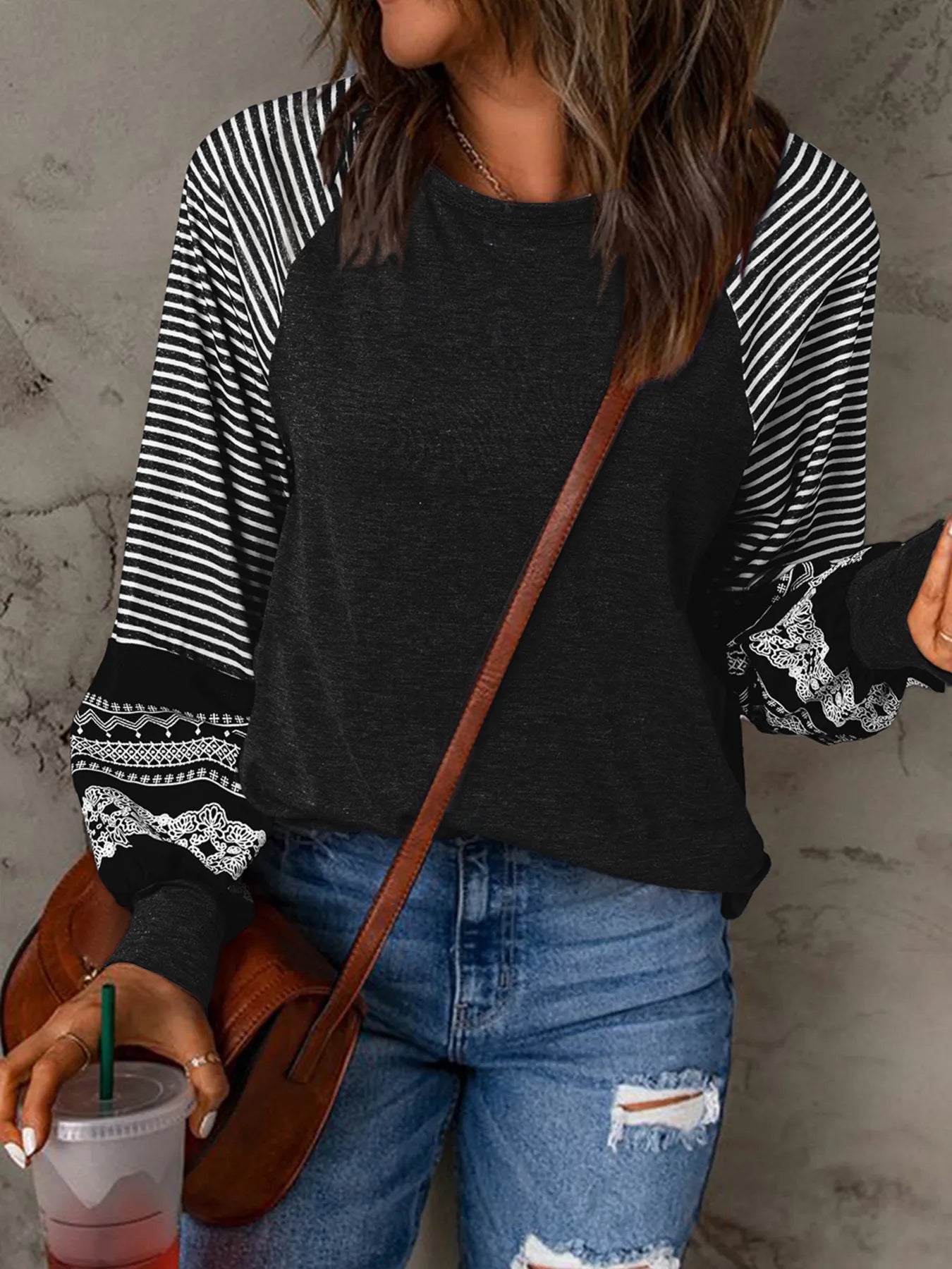 Contrast Print Striped Raglan Long Sleeve Loose Top