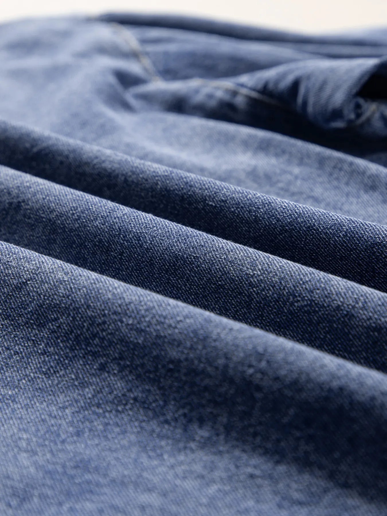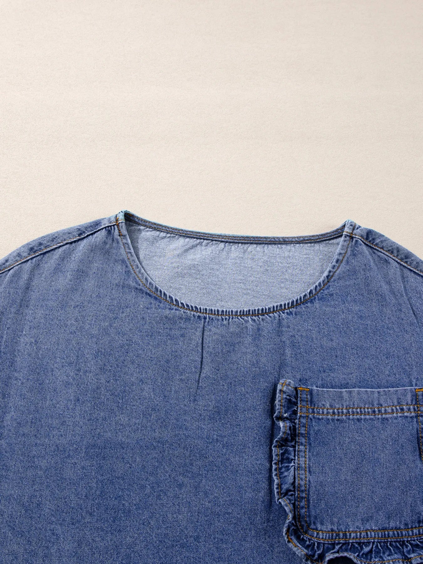 3/4 Sleeve Ruffled Patched Pocket Denim Blouse