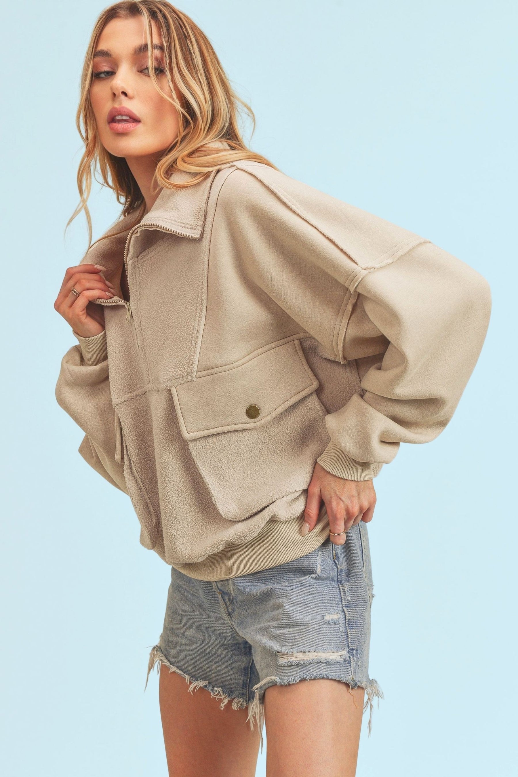 Aemi + Co Exposed Seam Half Zip Sweatshirt with Pockets