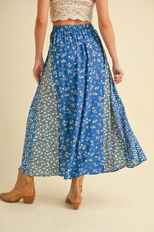 Aemi + Co Floral Elastic Waist Maxi Skirt