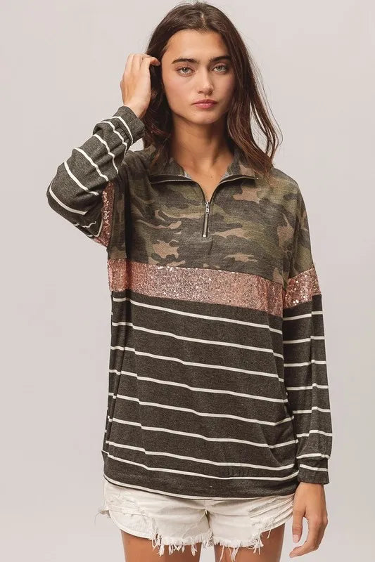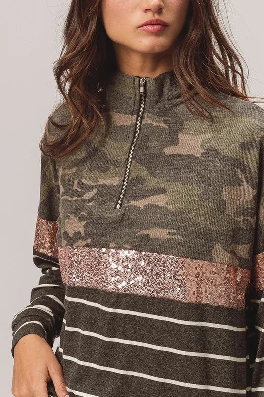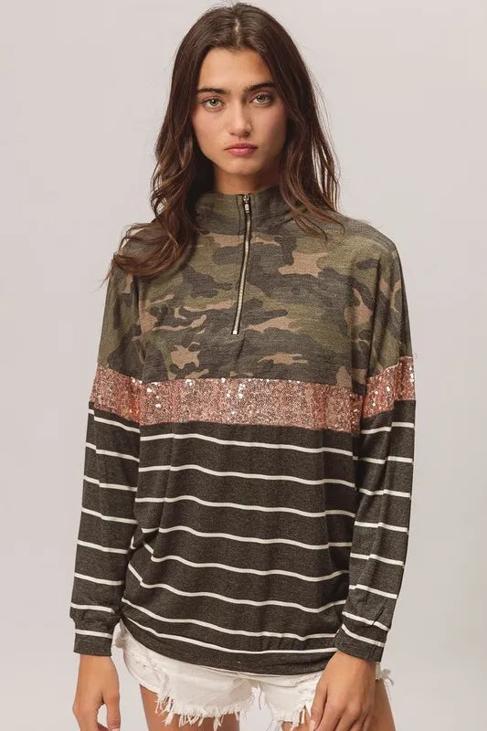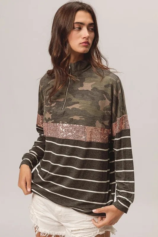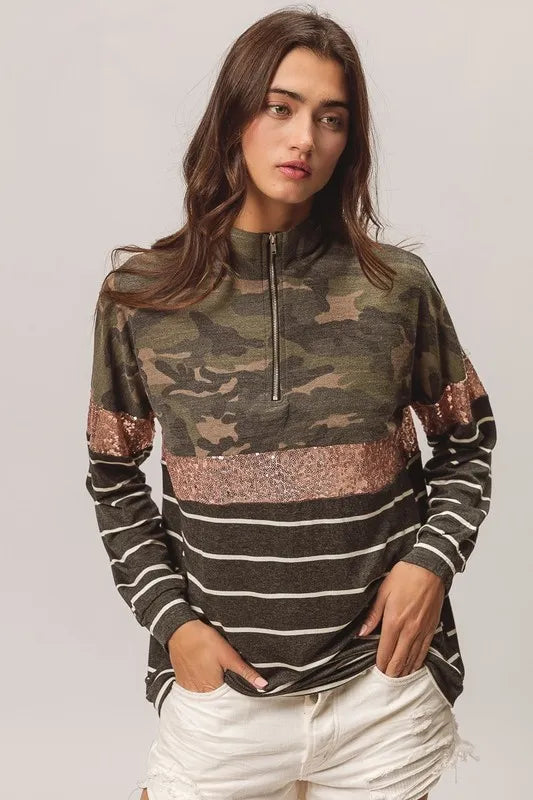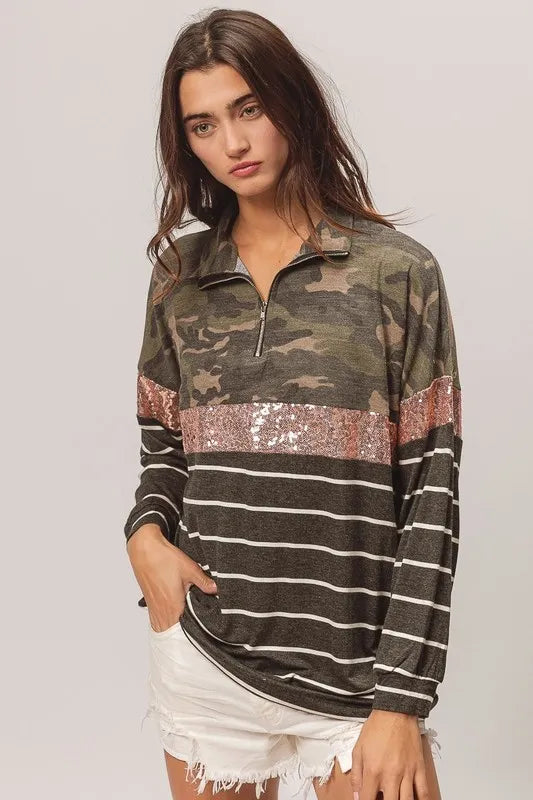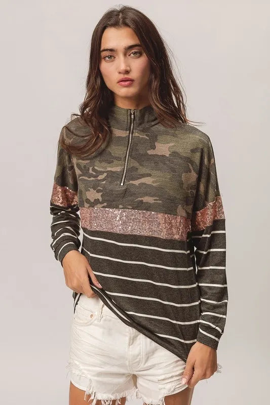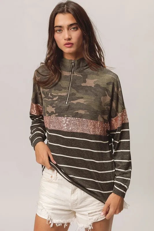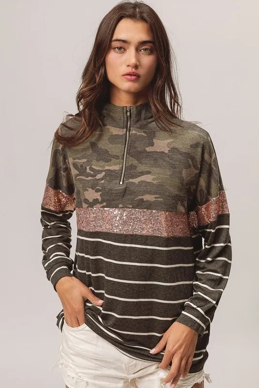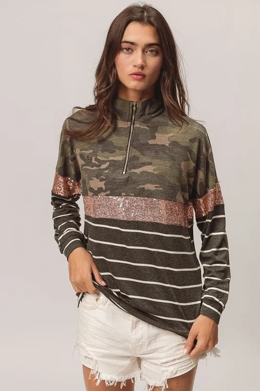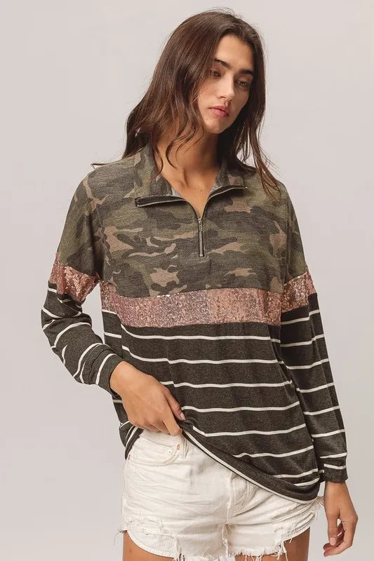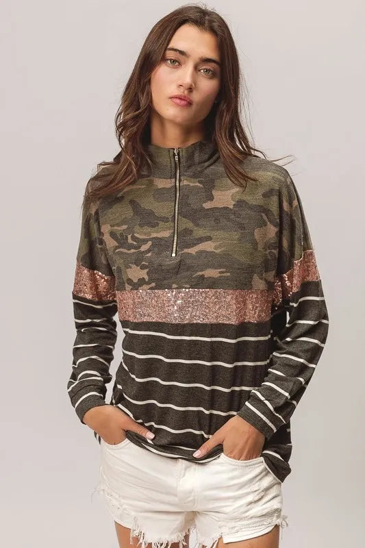 BiBi Camouflage French Terry Knit Top