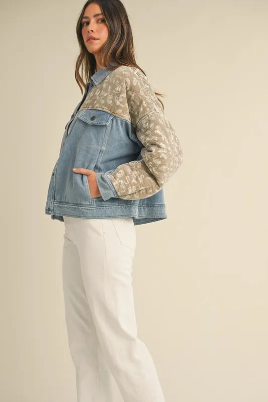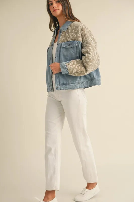 MABLE Quilted Paisley Print Contrast Denim Jacket