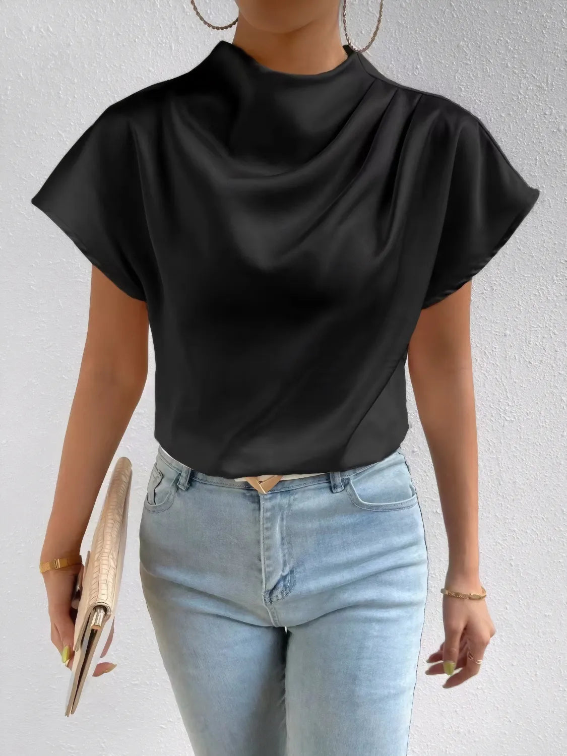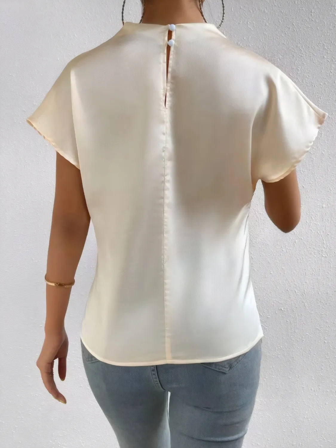 Mock Neck Short Sleeve Blouse