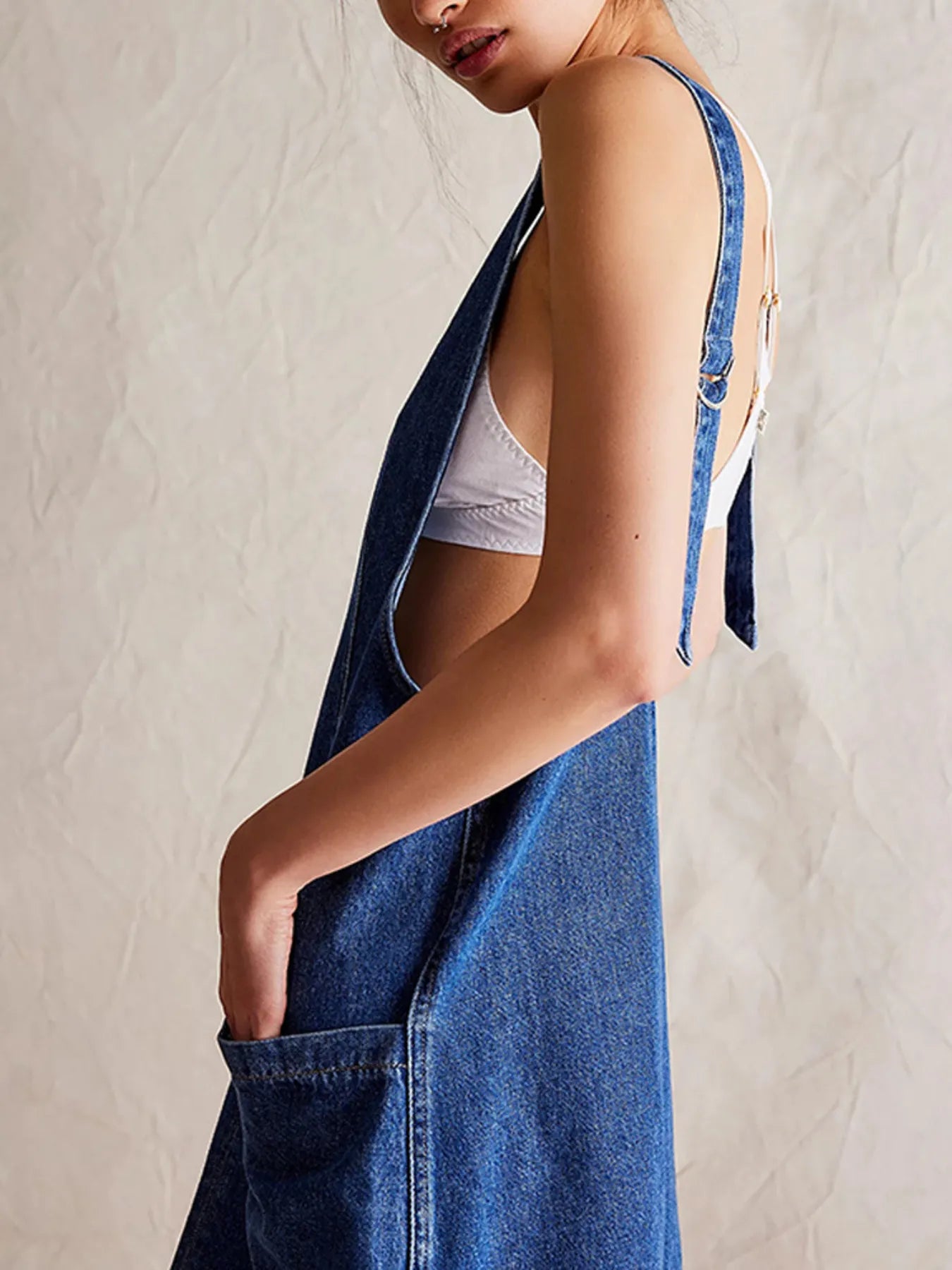 Oversized V-Neck Denim Tank Dress with Front Pockets