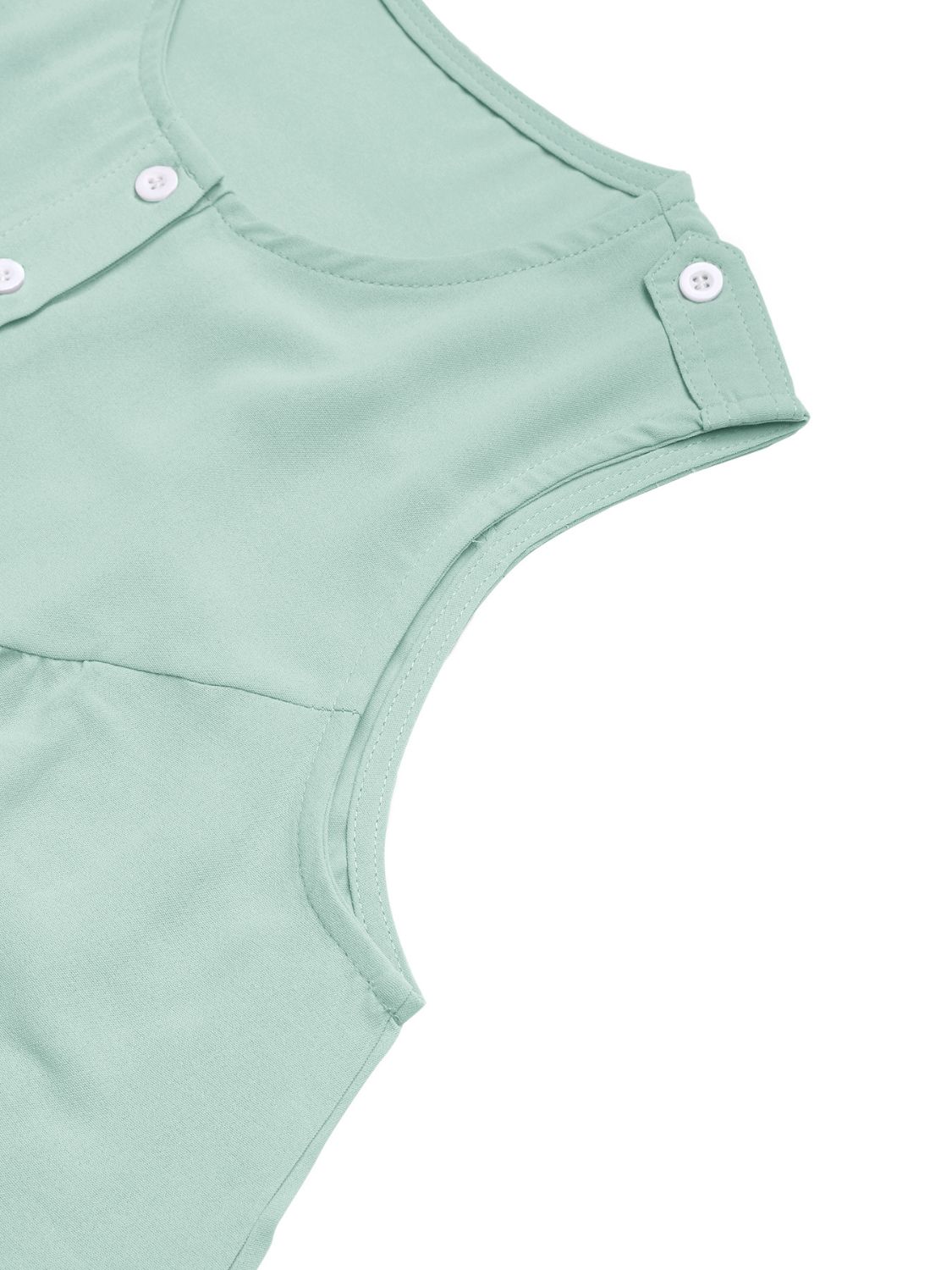 Perfee Button Detail Round Neck Sleeveless Mini Dress