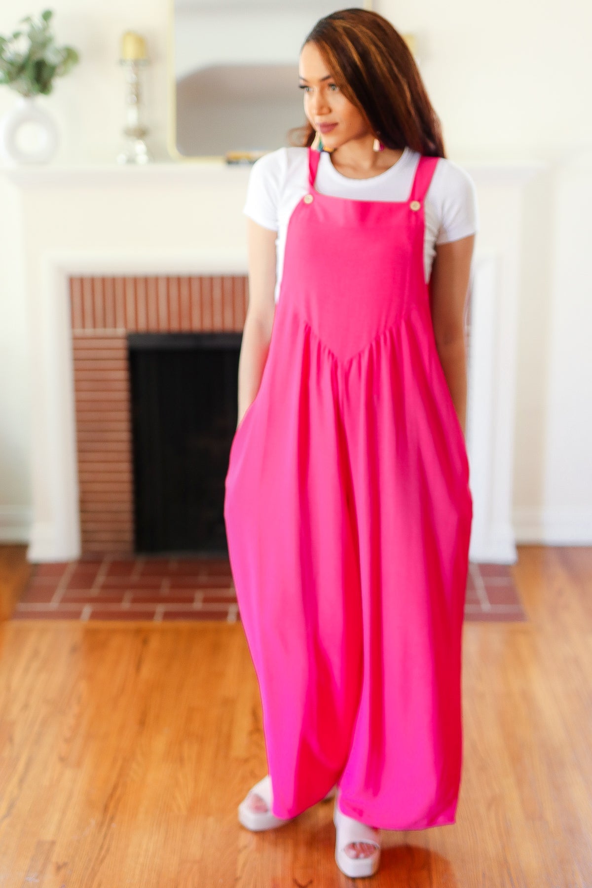 Summer Dreaming Pink Wide Leg Suspender Overall Jumpsuit