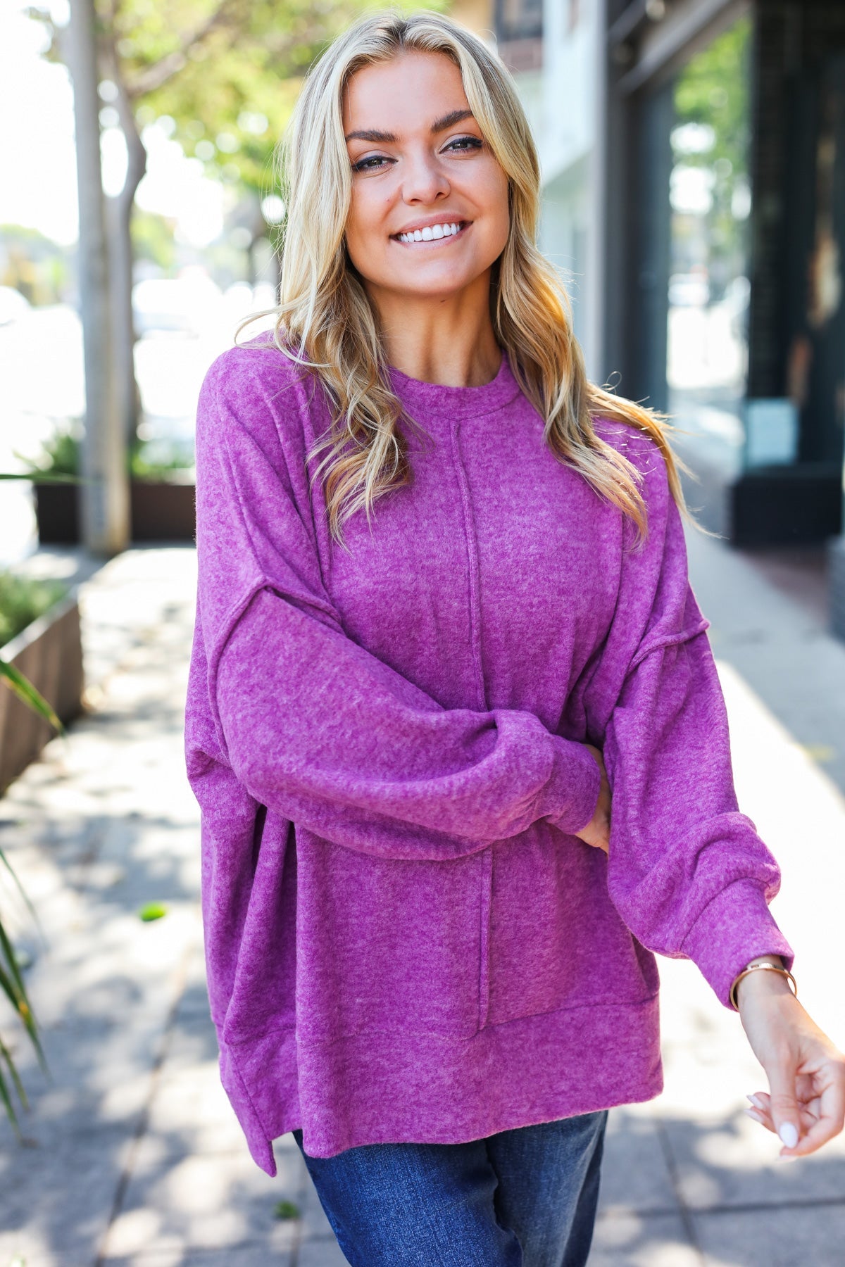 Sublime Plum Exposed Seam Brushed Melange Sweater