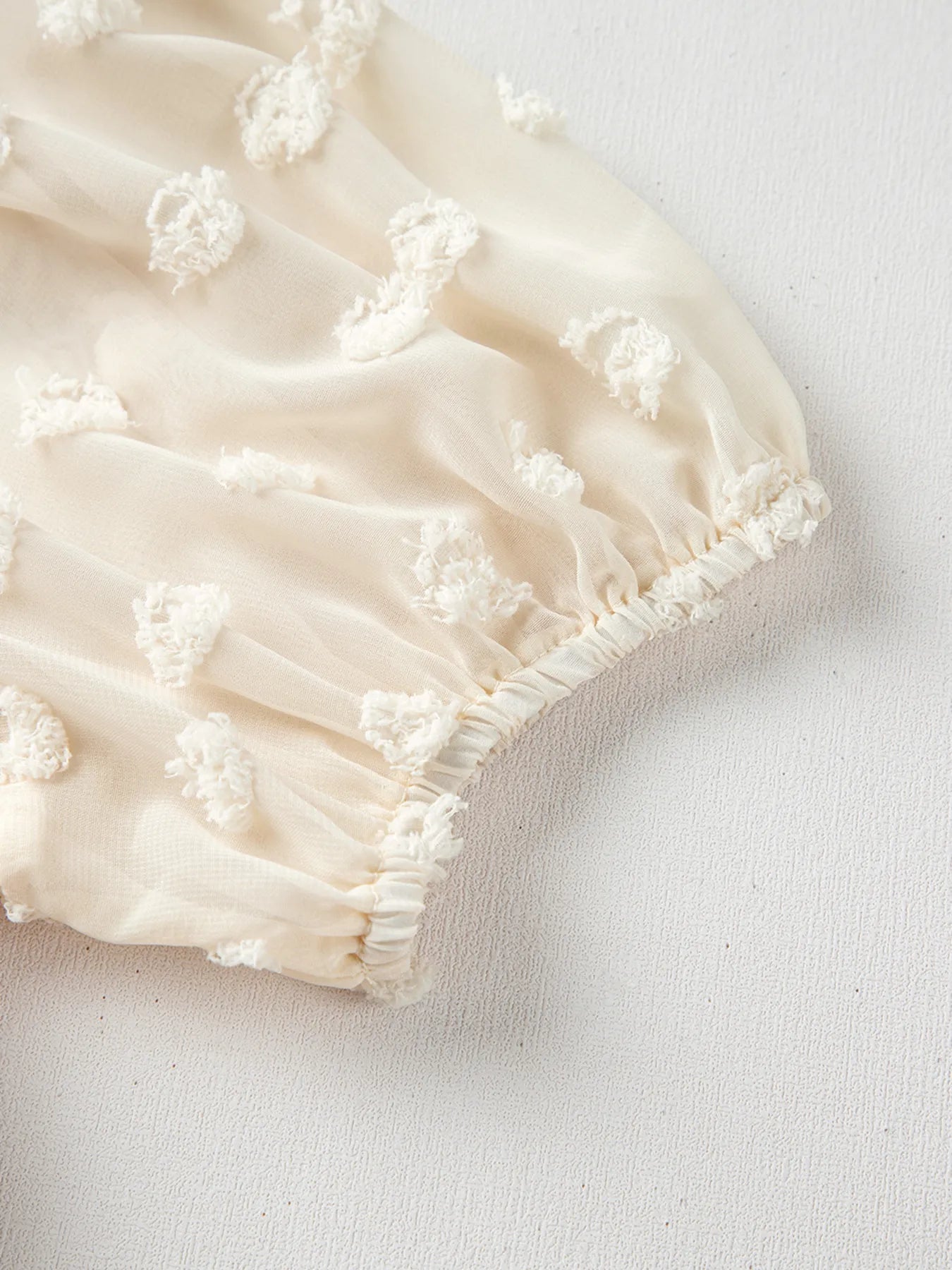 Polka Dot Mesh Puff Sleeve Textured Blouse