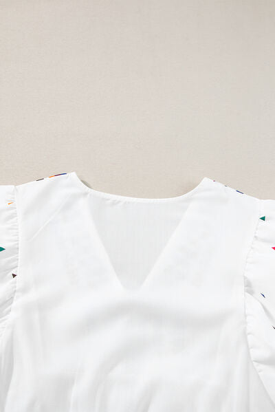 Printed V-Neck Puff Sleeve Top