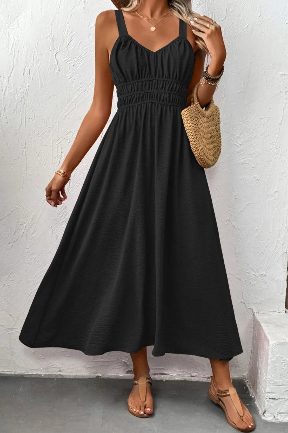 Ruched Wide Strap Cami Dress