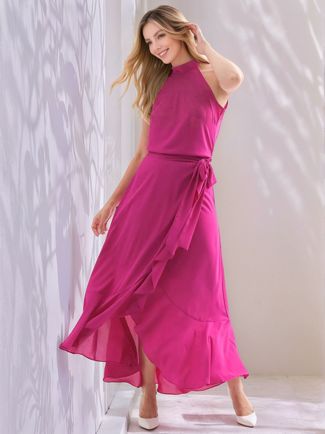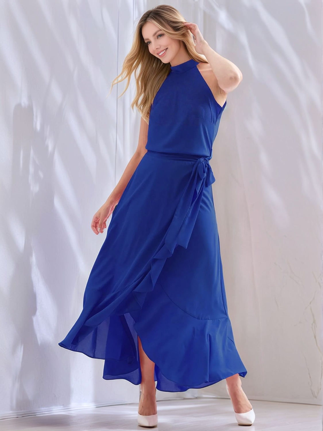 Ruffled Grecian Neck Maxi Dress