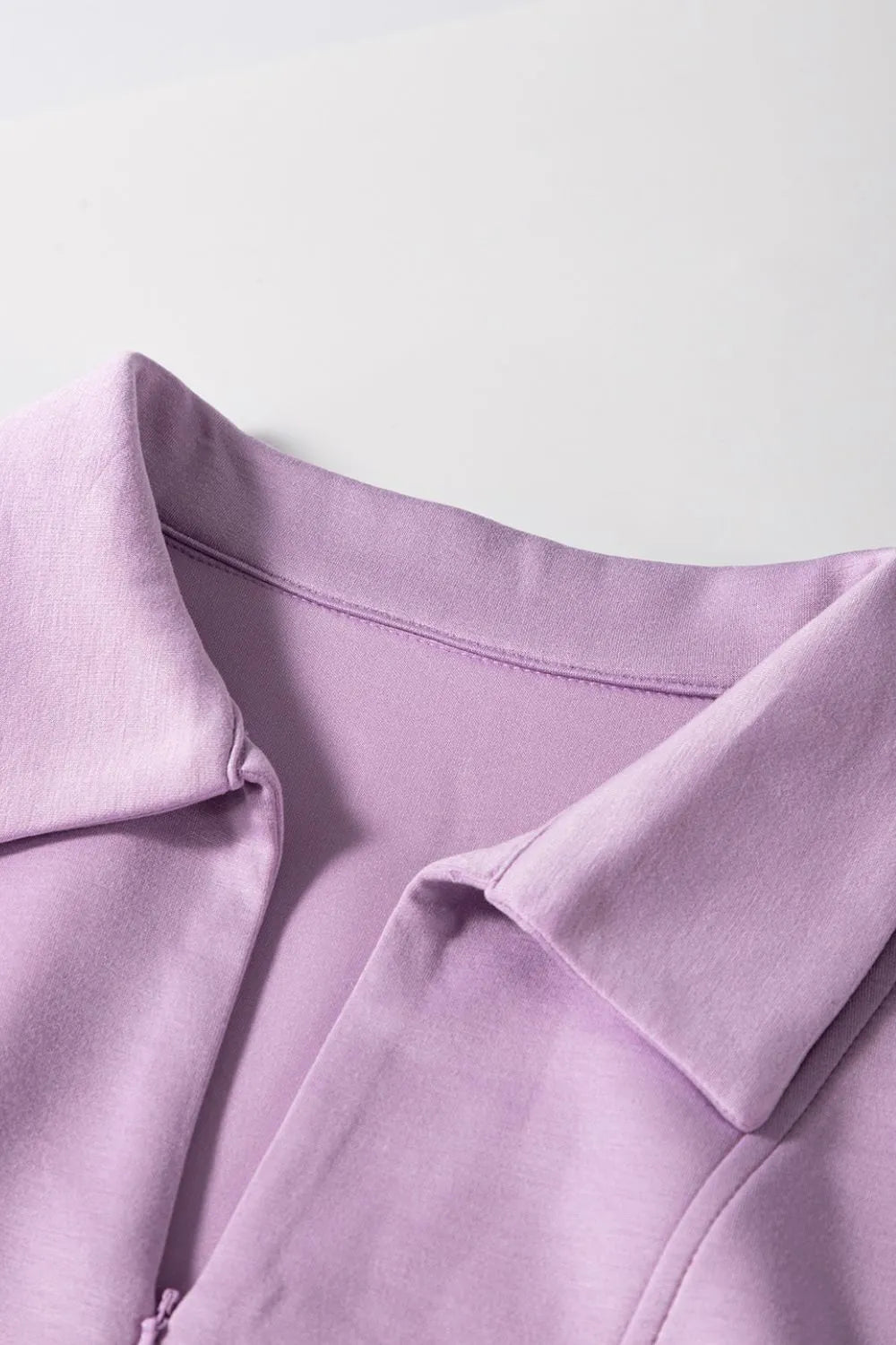 Short Sleeve Zipper Collared Elastic High Waist Romper