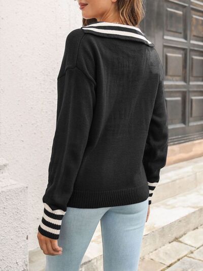 Striped Trim Drop Shoulder Sweater