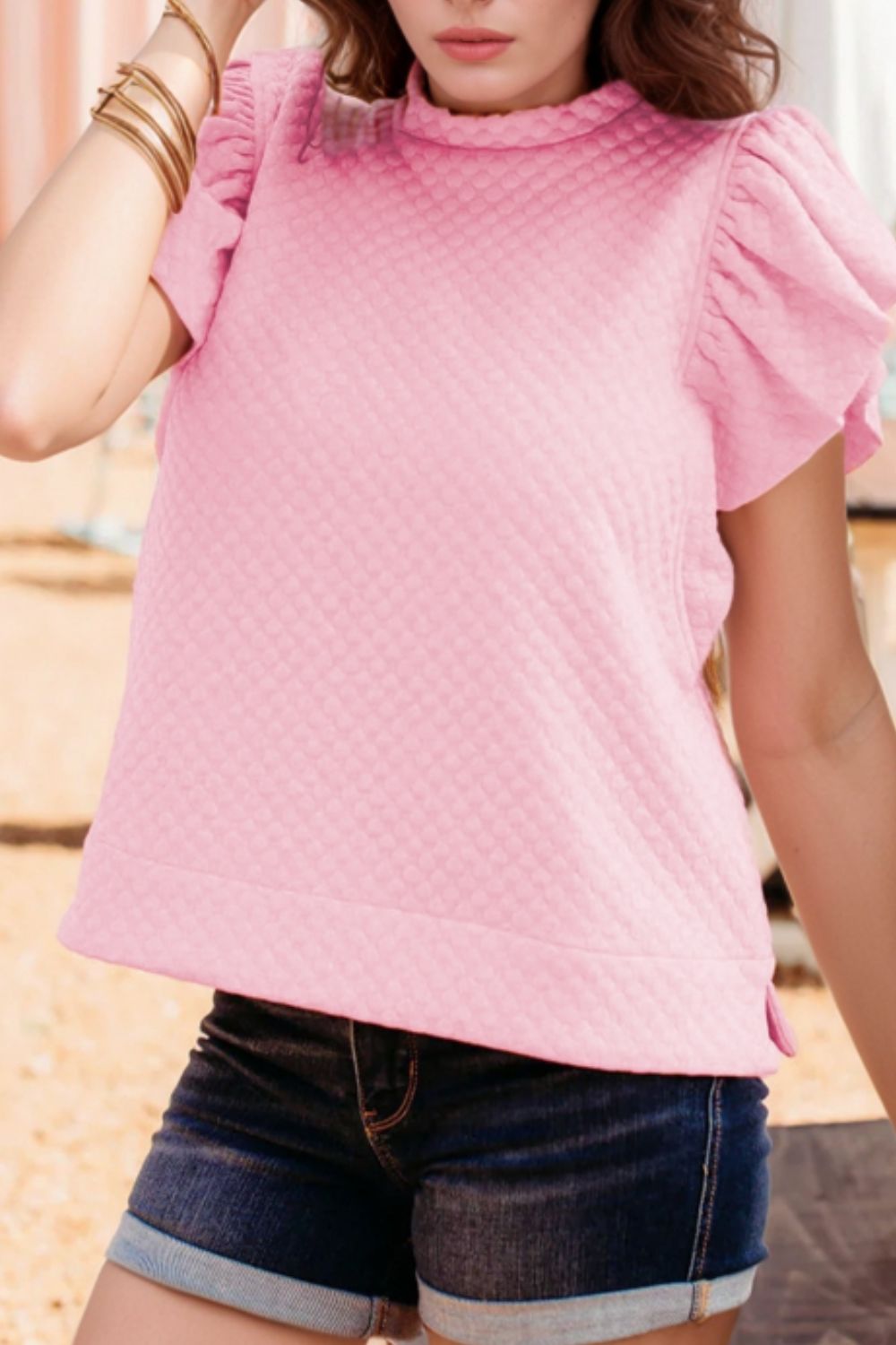 Textured Ruffle Cap Sleeve Top