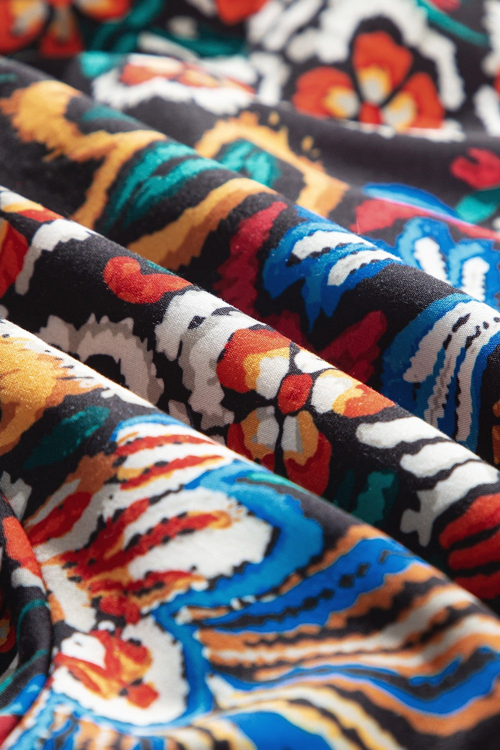 Tropical Print Puff Sleeve Knot Front Blouse