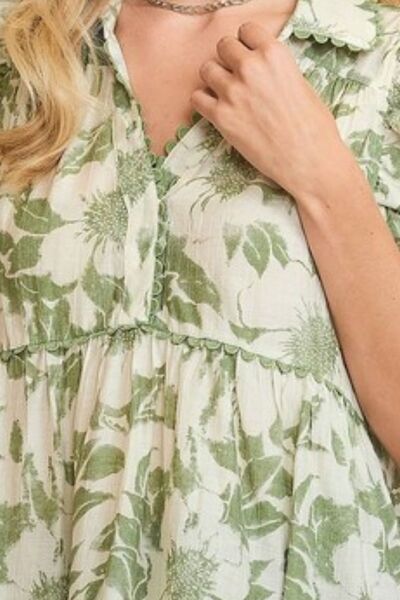 Umgee Full Size Botanical Print Babydoll Top Plus Size