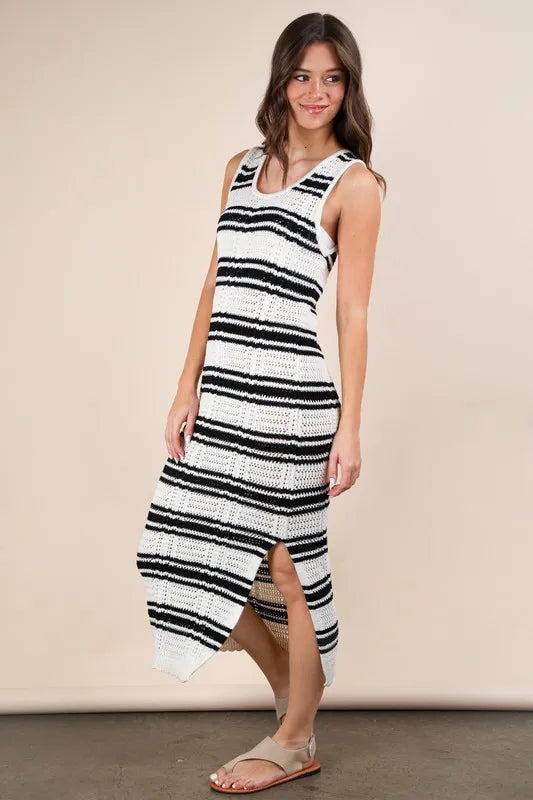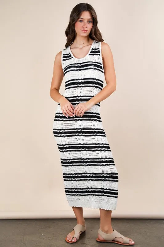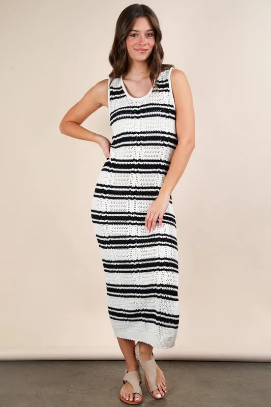 VERY J Stripe Knit Casual Sweater Midi Dress