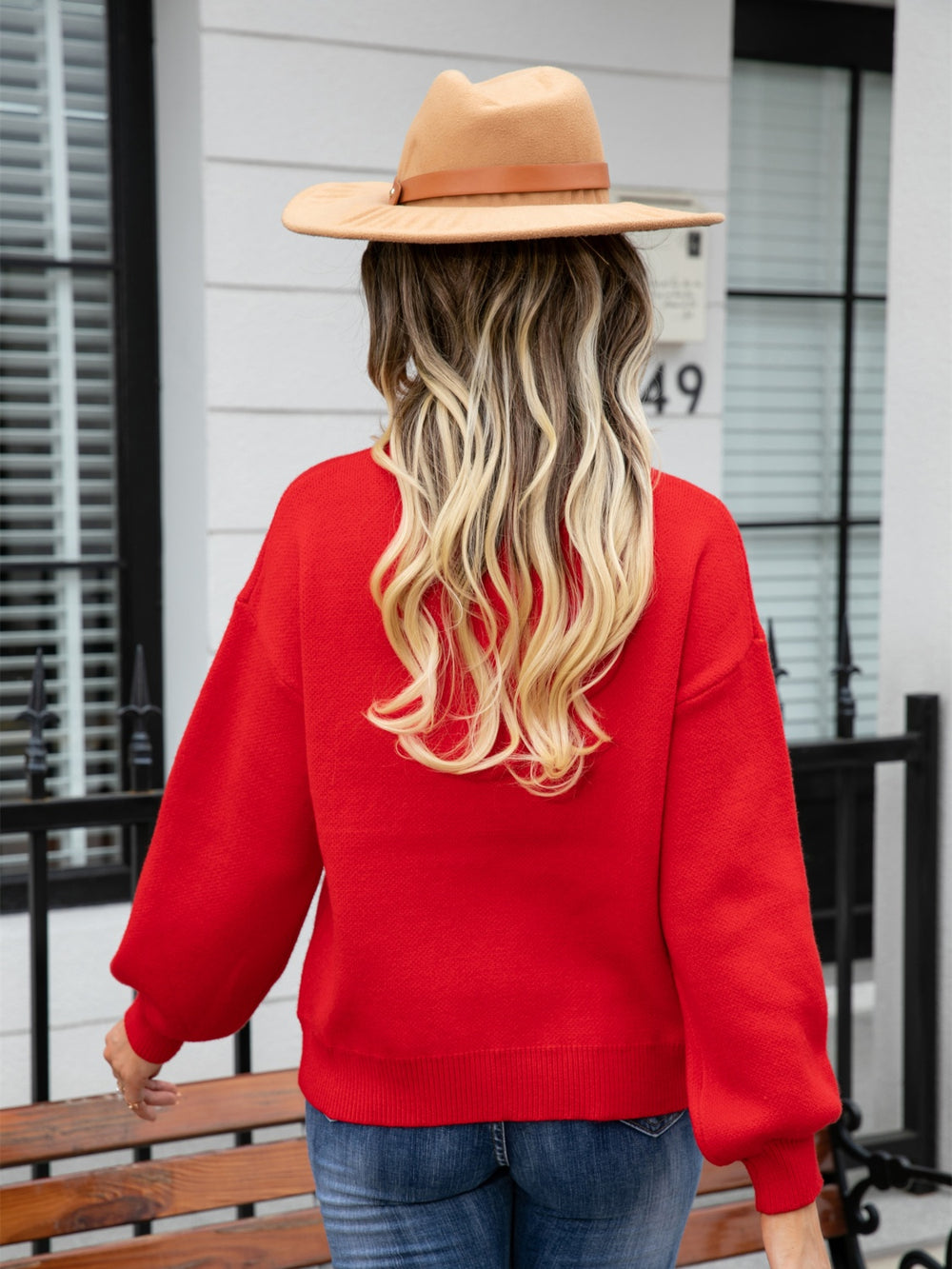 Angel Wings Heart Round Neck Dropped Shoulder Long Sleeve Sweater