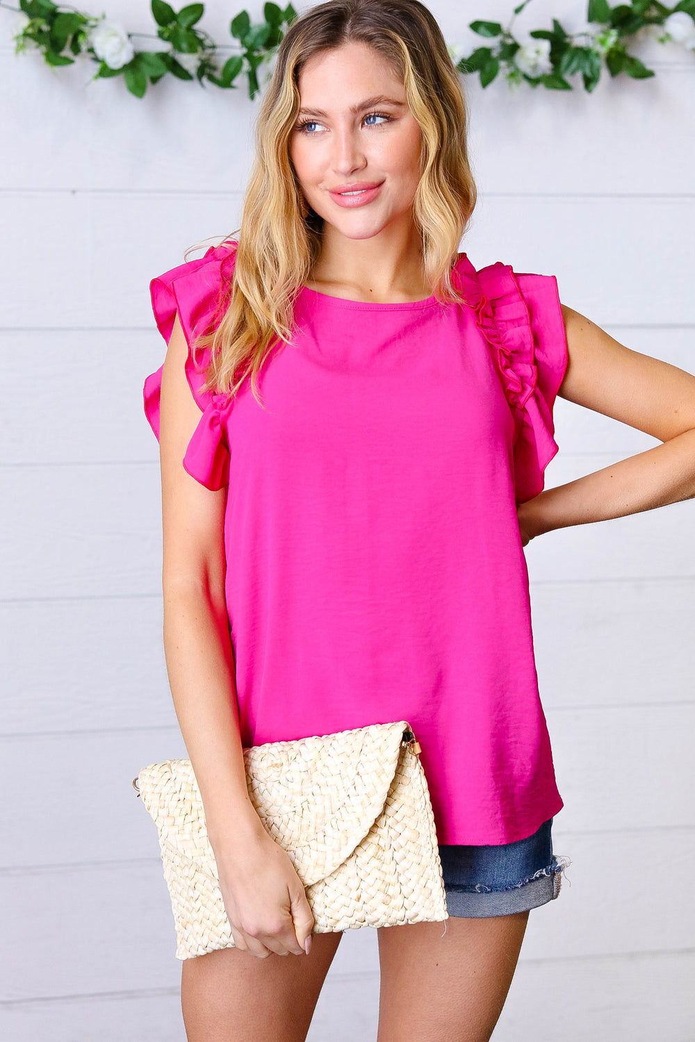 Oatmeal Terry Eyelet Flutter Sleeve Top