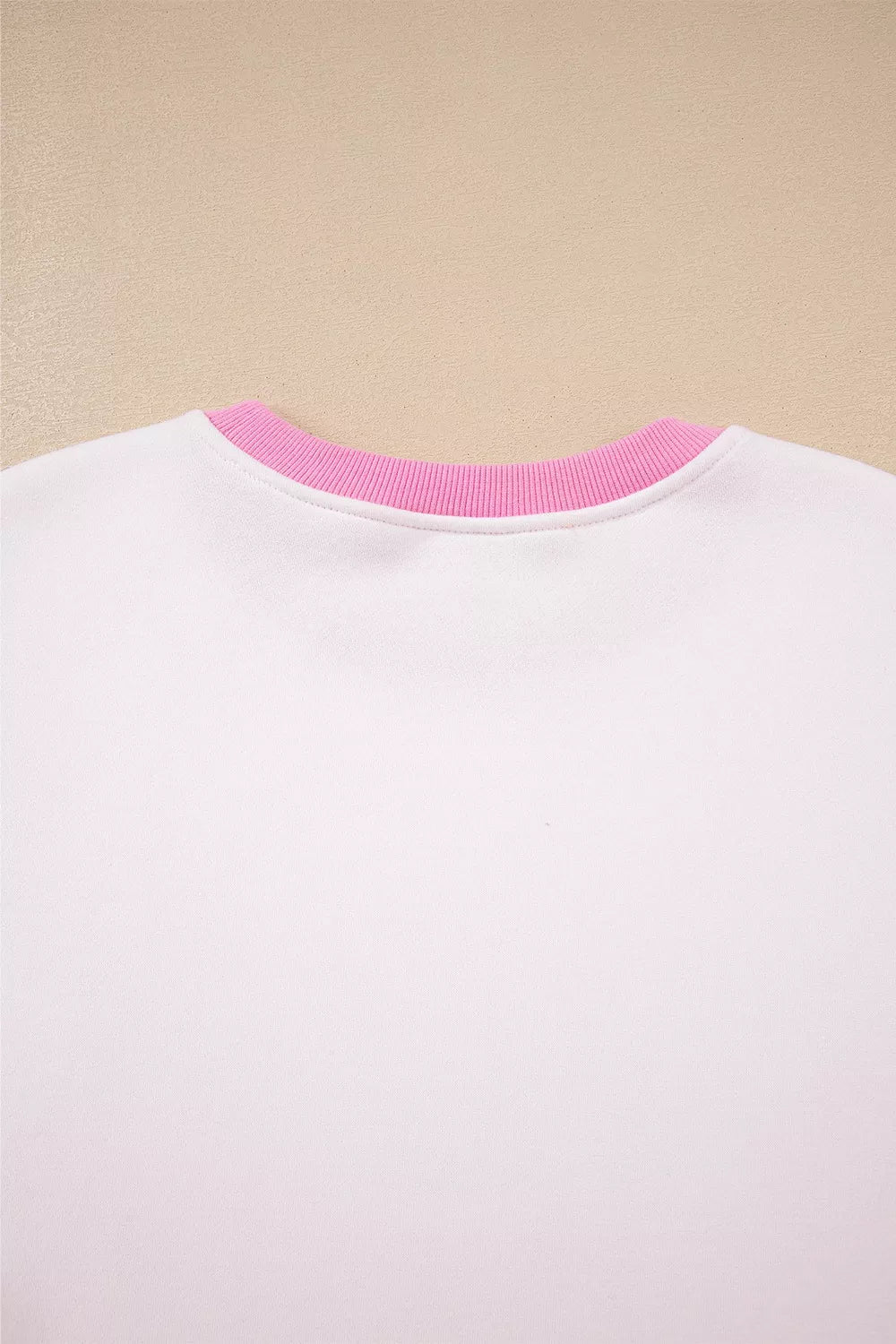 Color Block Sweatshirt and Elastic Waist Shorts Set
