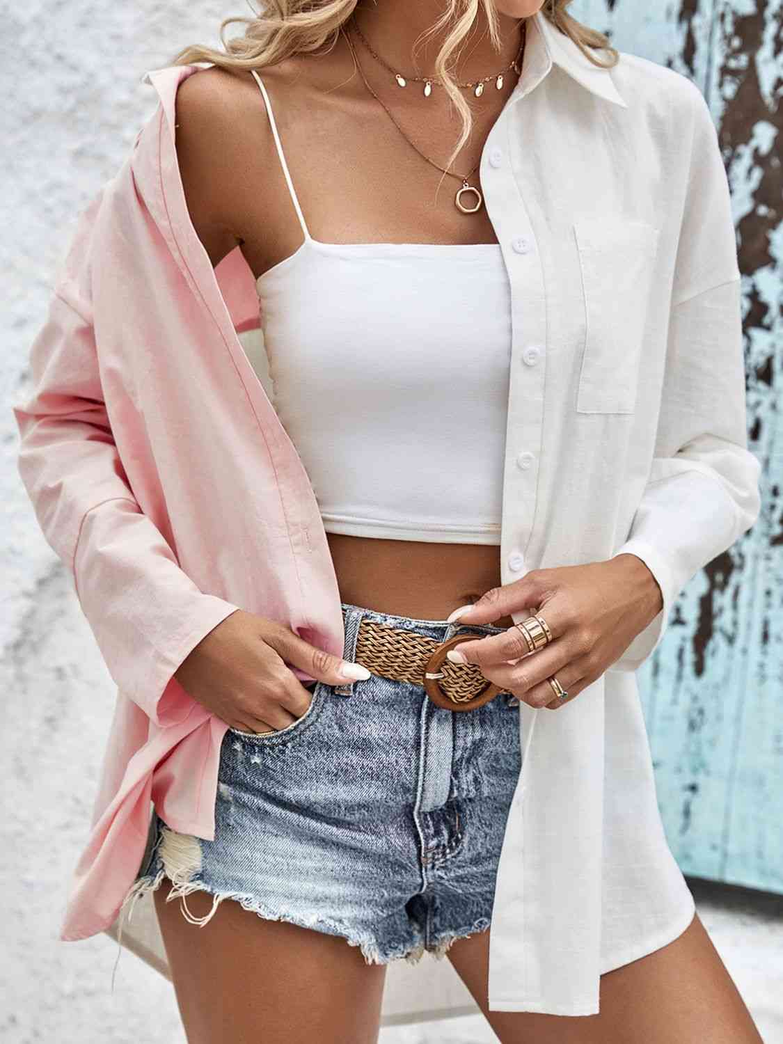 Two-Tone Contrast Drop Shoulder Shirt