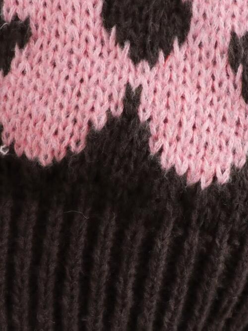 Waffle Contrast Knit Color Block Patchwork Button Front Oversize Hoodie
