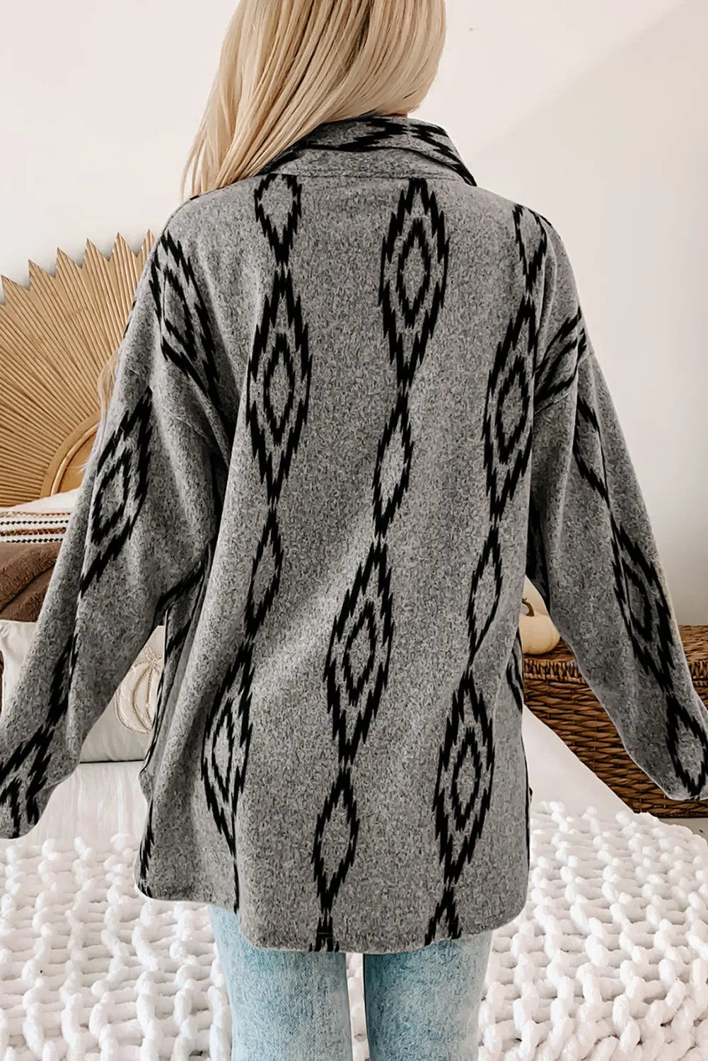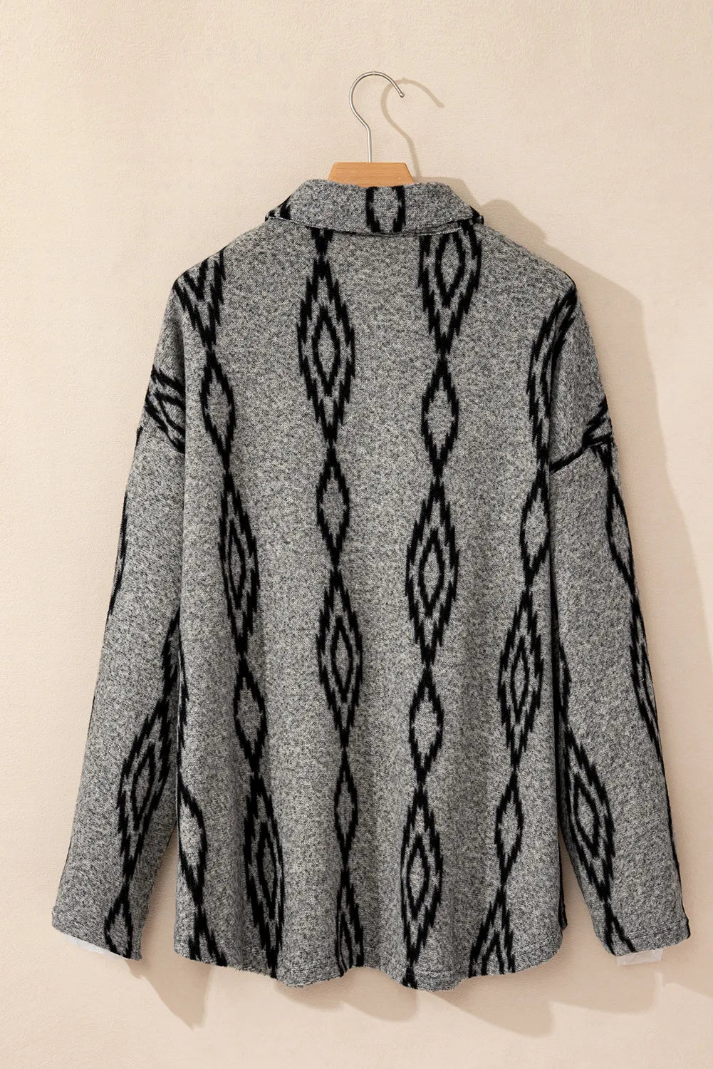 Waffle Contrast Knit Color Block Patchwork Button Front Oversize Hoodie