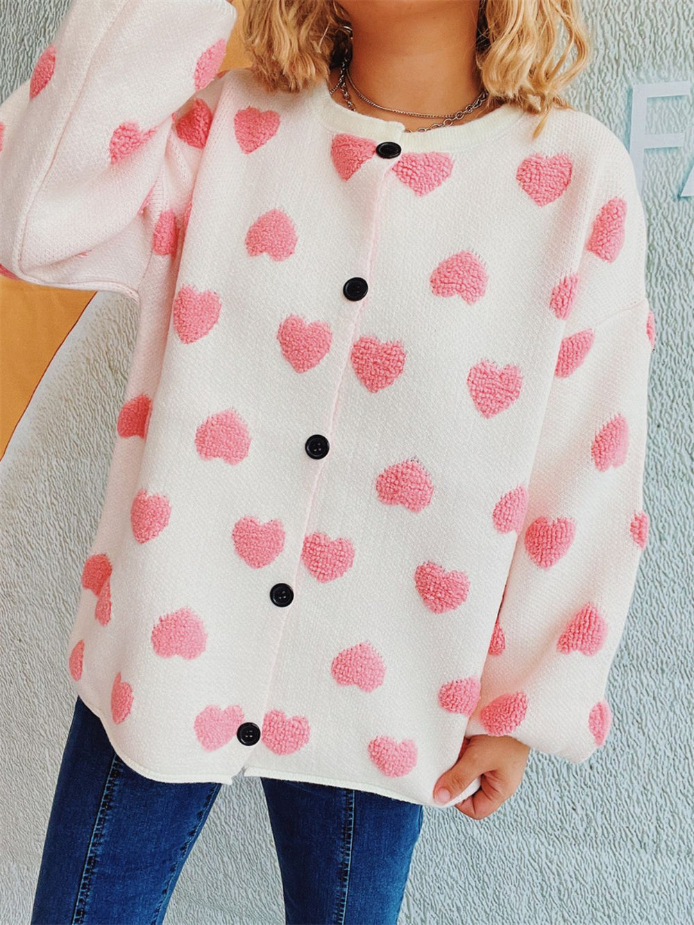 Heart Button Up Long Sleeve Cardigan