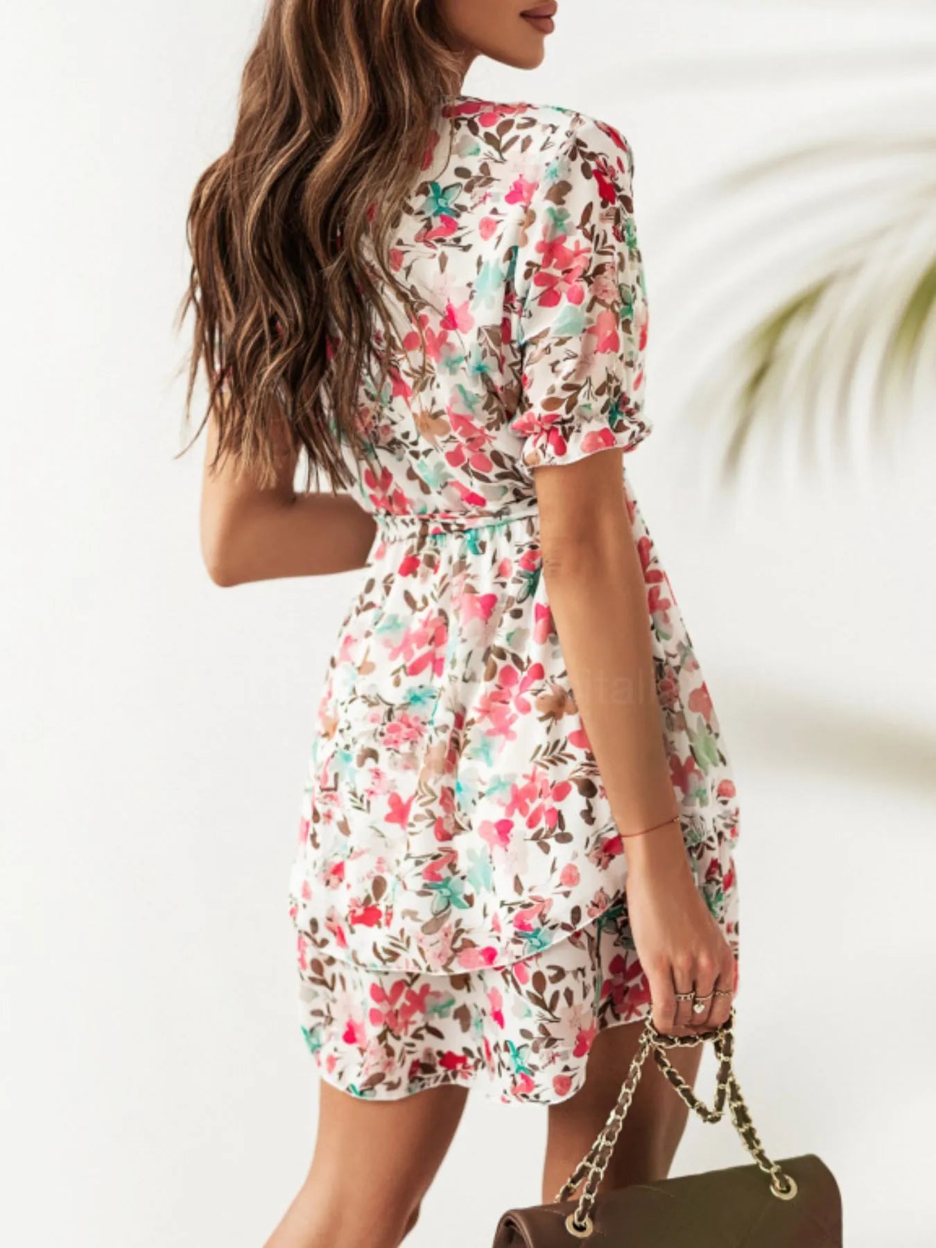 Plus Size Floral Print Short Sleeves V-Neck Dress