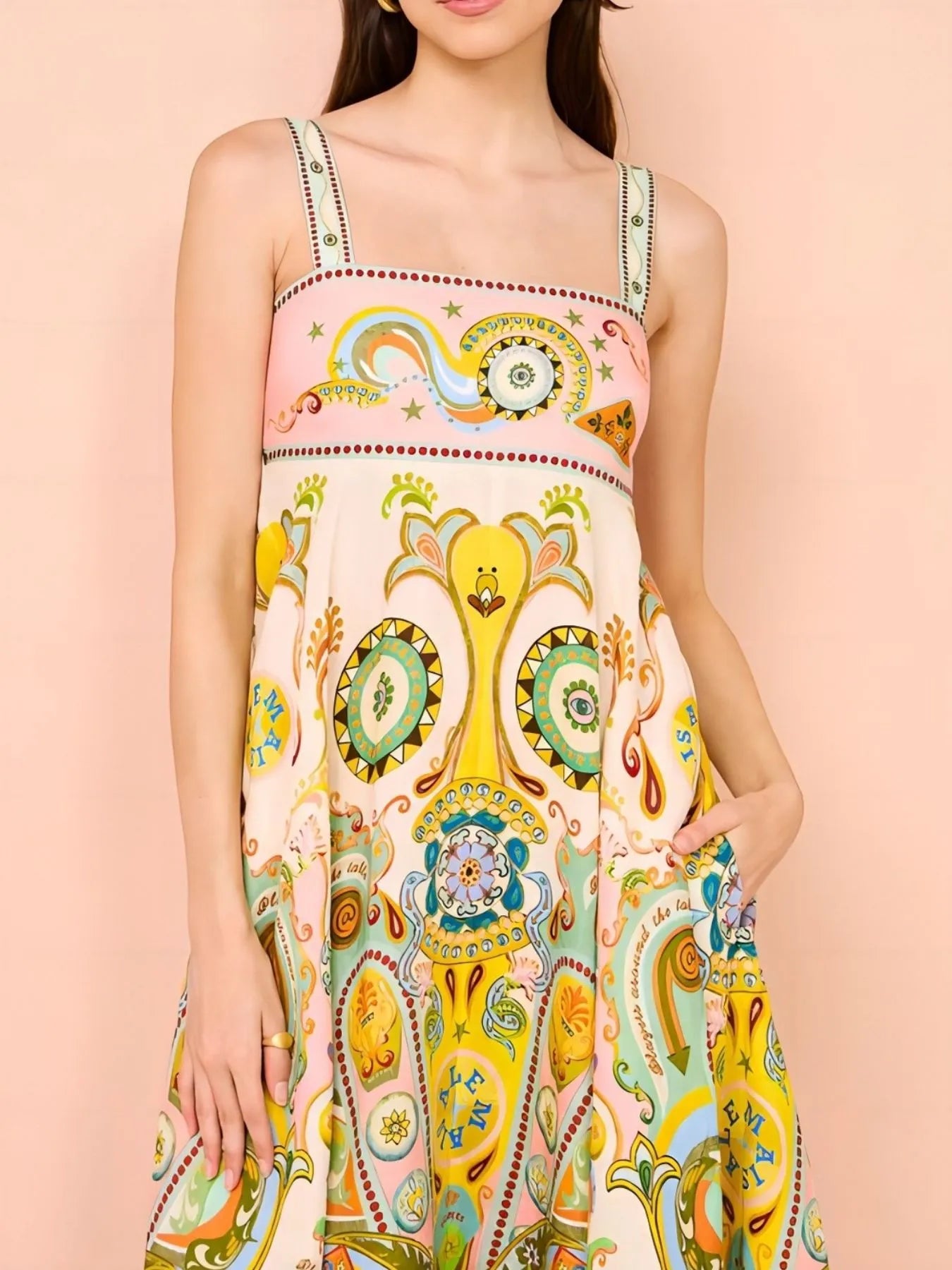 Paisley Print Square Neck Summer Dress