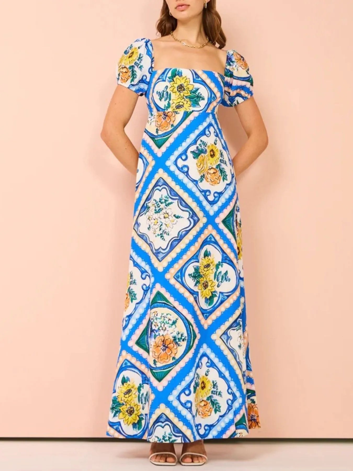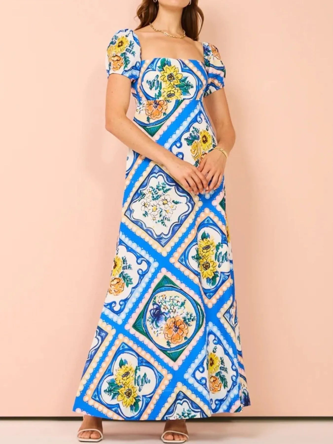 Plus Size Printed V-Neck Short Sleeve Maxi Dress