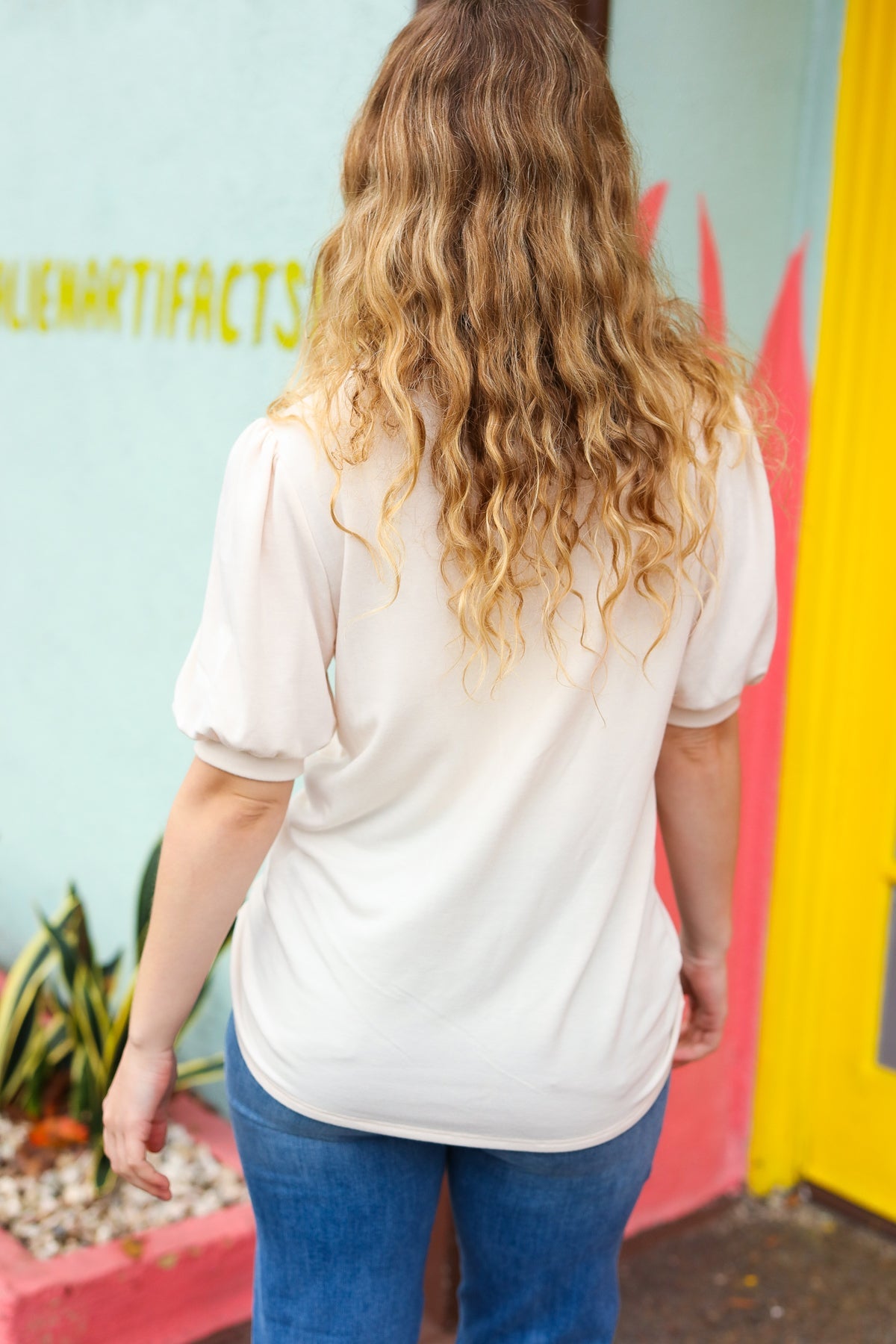 Stay lucky with this cream French terry top that features puff banded sleeves and a four-leaf clover sequin decal. The perfect St Paddy's Day top.