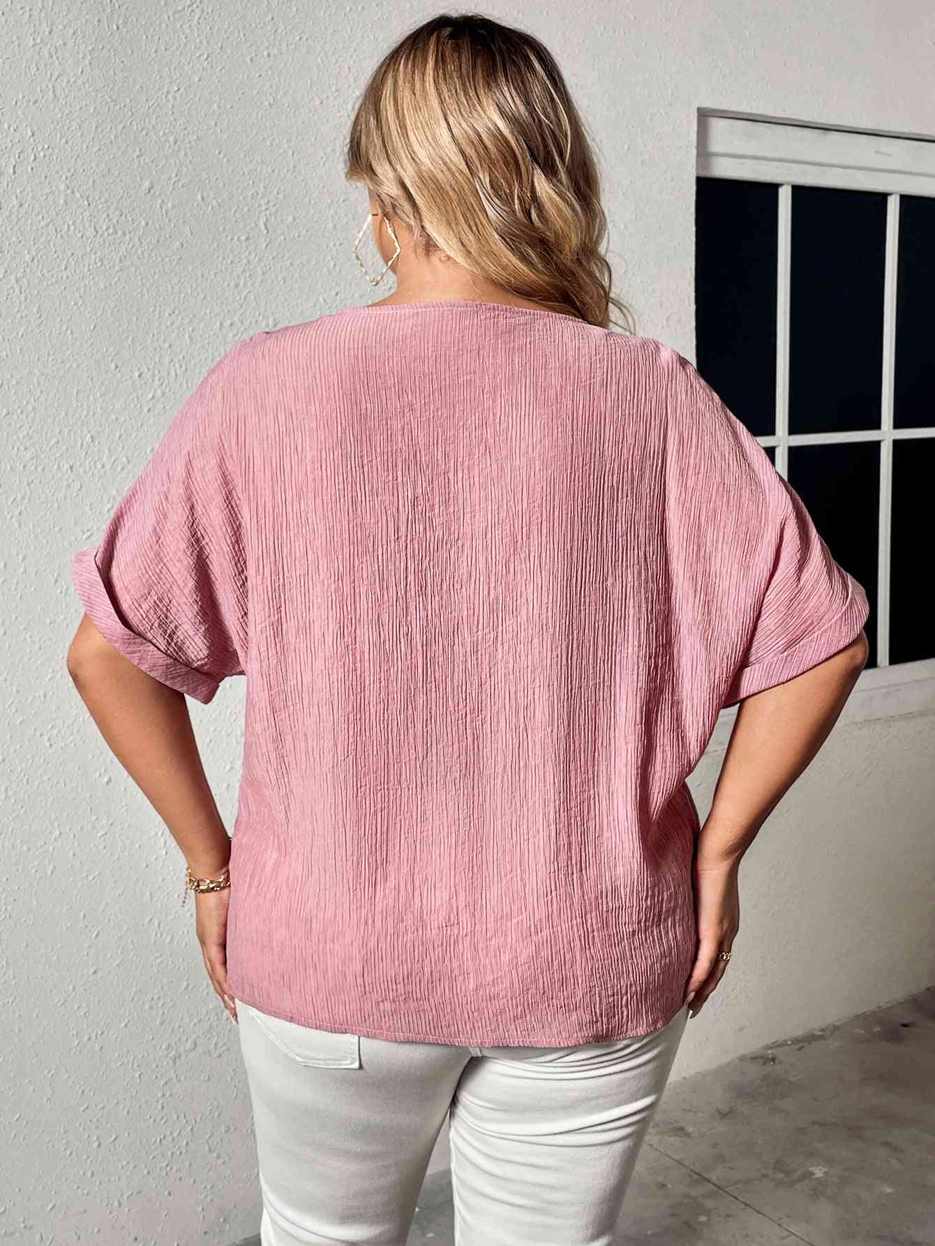 Plus Size Buttoned V-Neck Short Sleeve Blouse