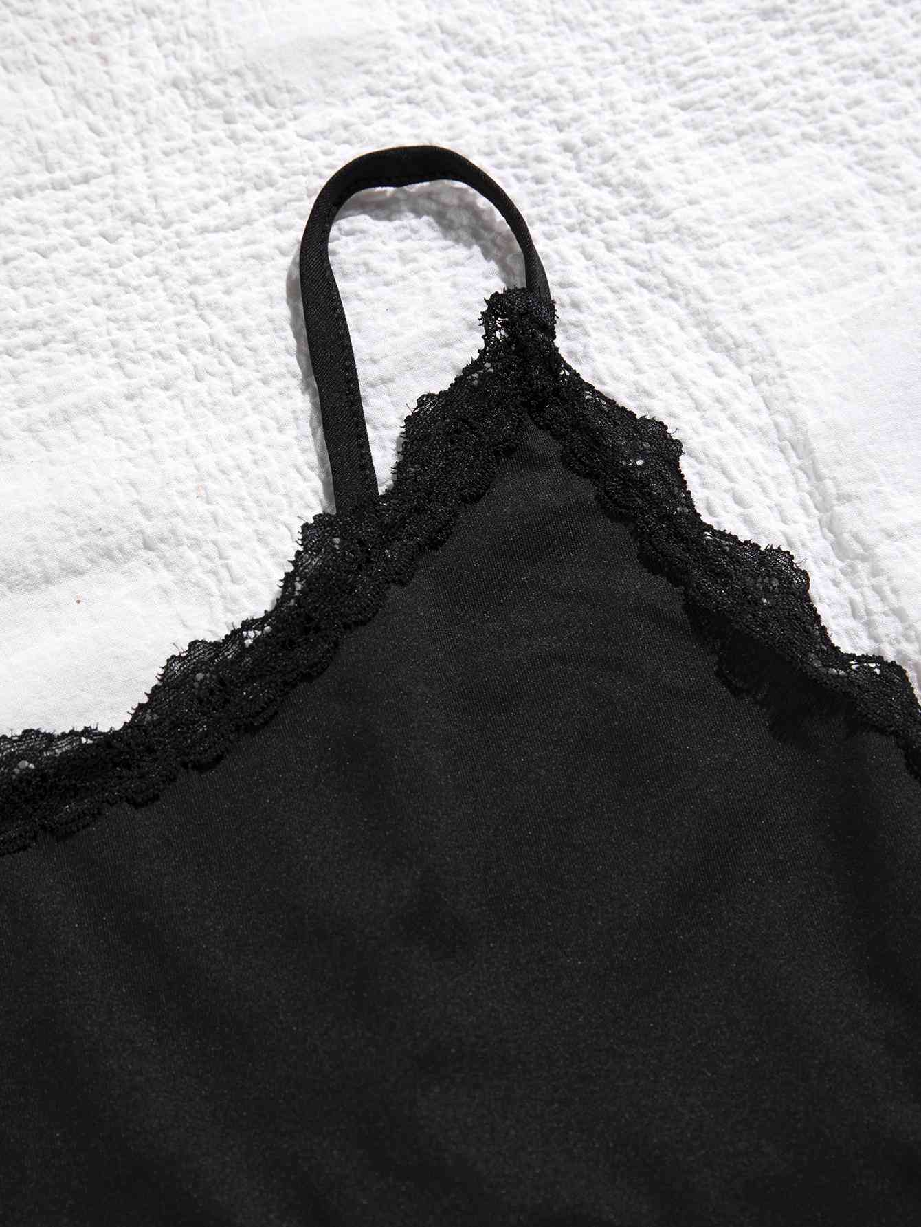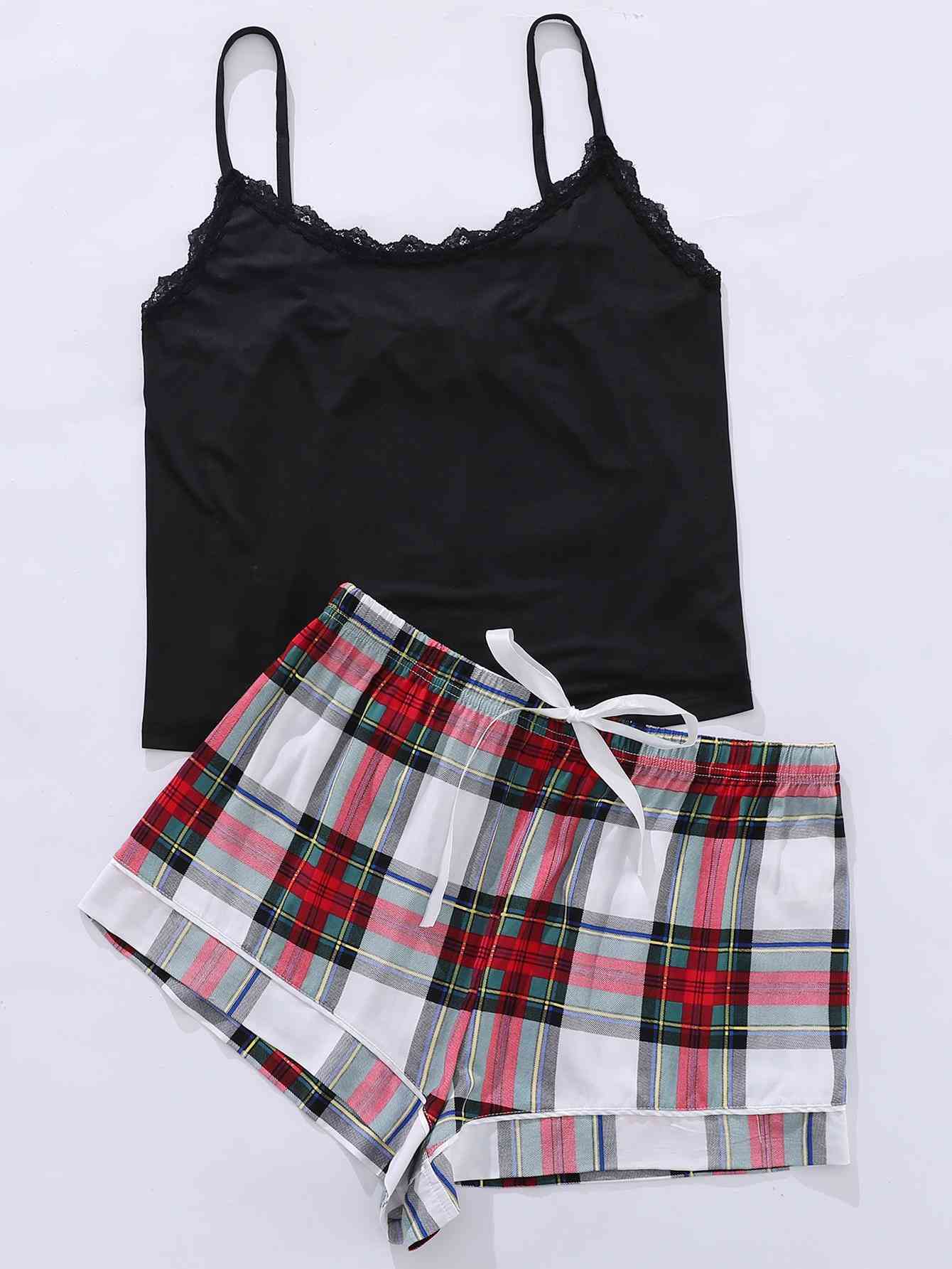 Plus Size Lace Trim Scoop Neck Cami and Printed Shorts Pajama Set