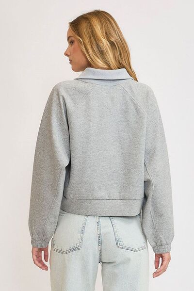 Umgee Full Size Half Zip Cropped Sweatshirt Plus Size